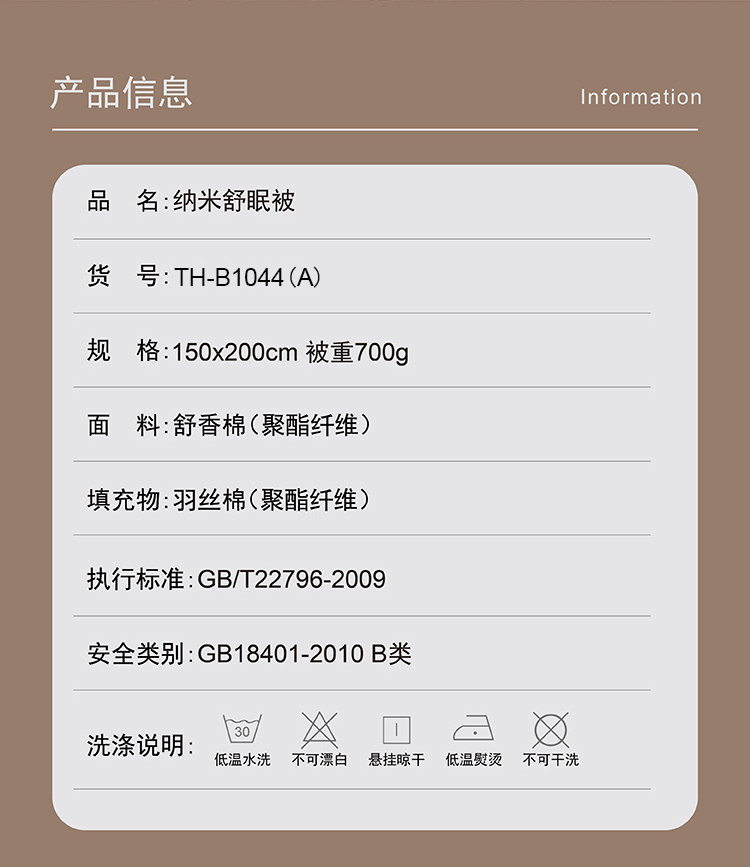 商品名称:faunen/芳恩芳华纳米舒眠被150*200cm 700g