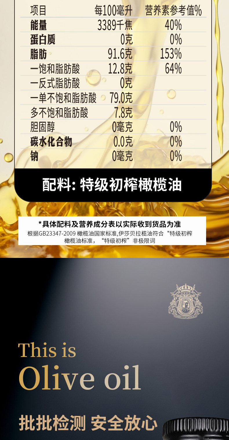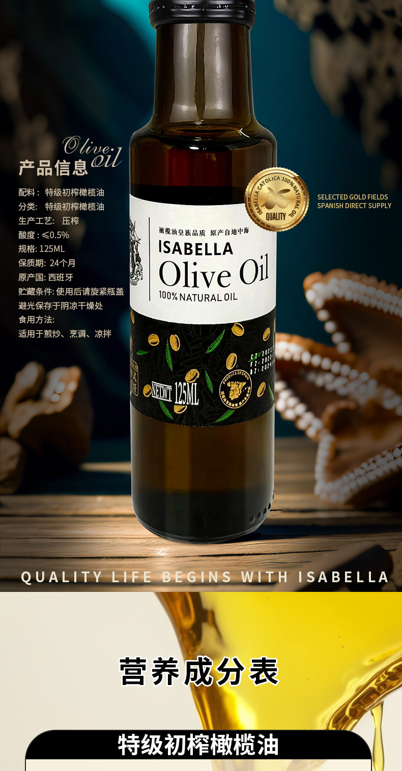商品名称:ISABELLA CATOLICA/伊莎贝拉西班牙进口特级初榨橄榄油125ml