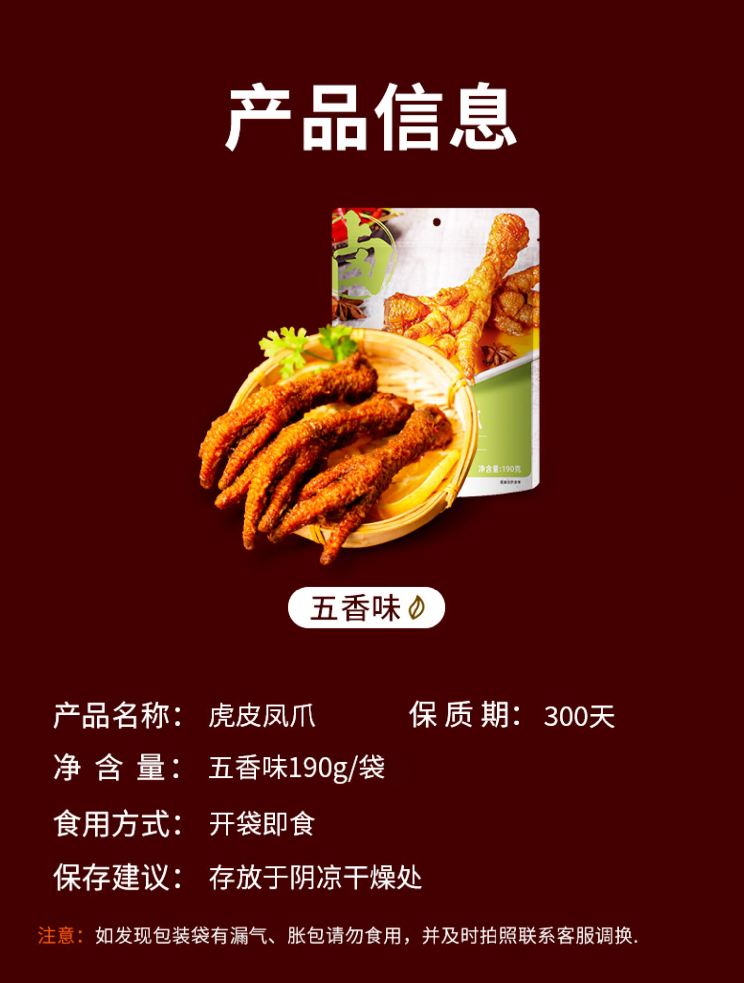 商品名称:XIAO HU DUCK/小胡鸭五香虎皮凤爪190g