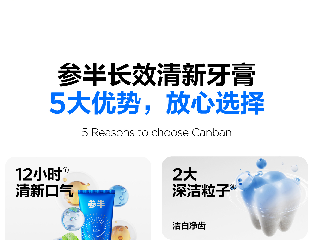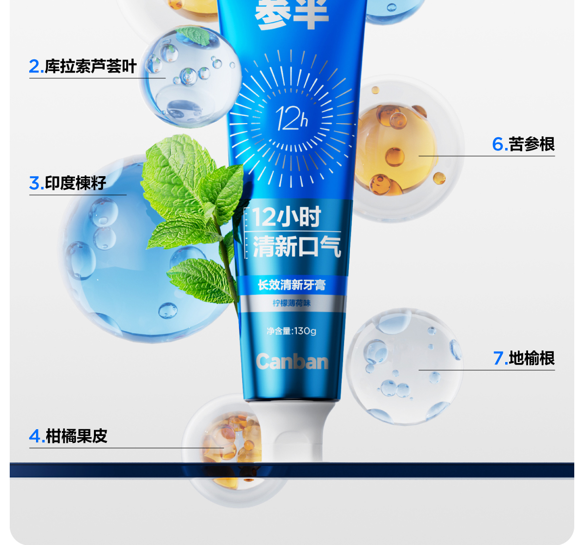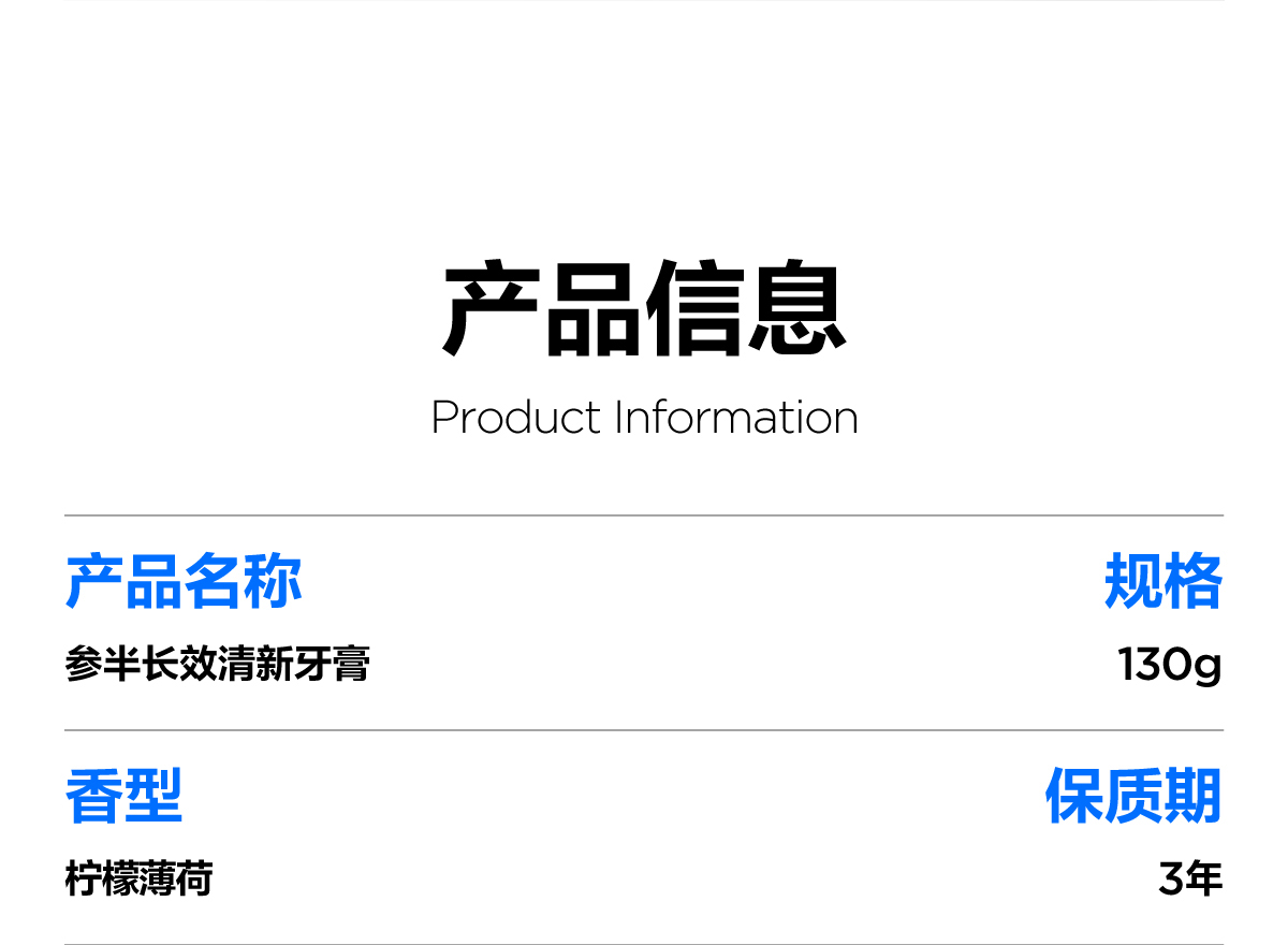 商品名称:参半长效清新牙膏-柠檬薄荷130g*3支