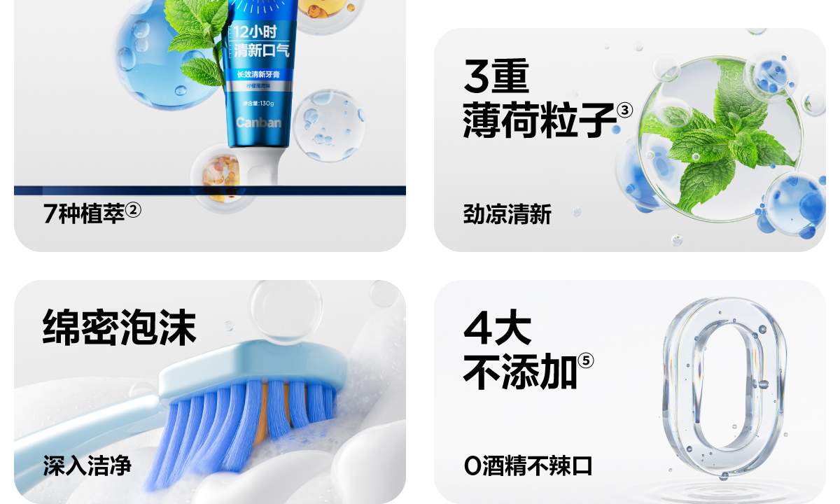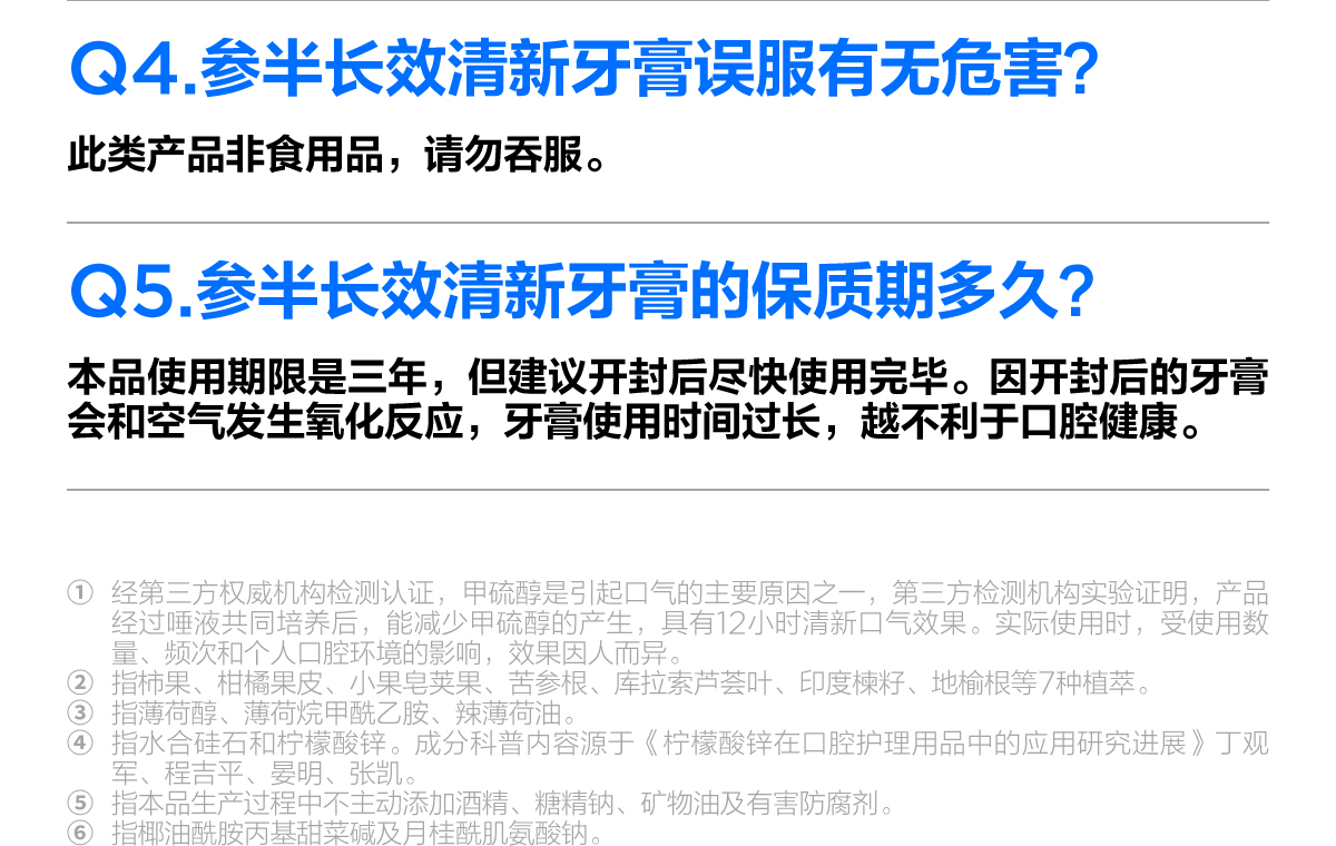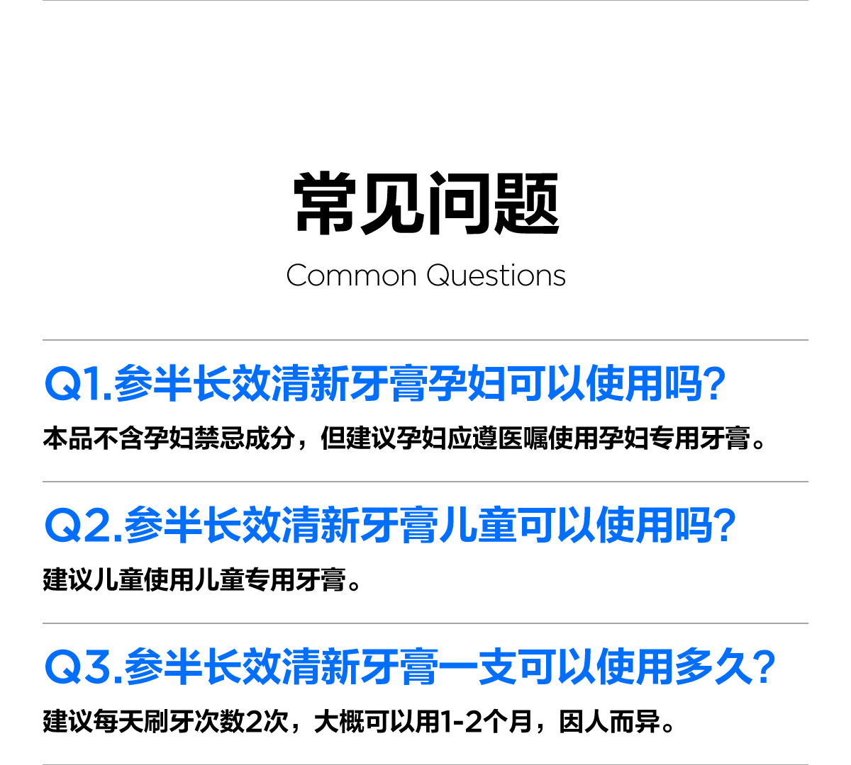 商品名称:参半长效清新牙膏-柠檬薄荷130g*3支