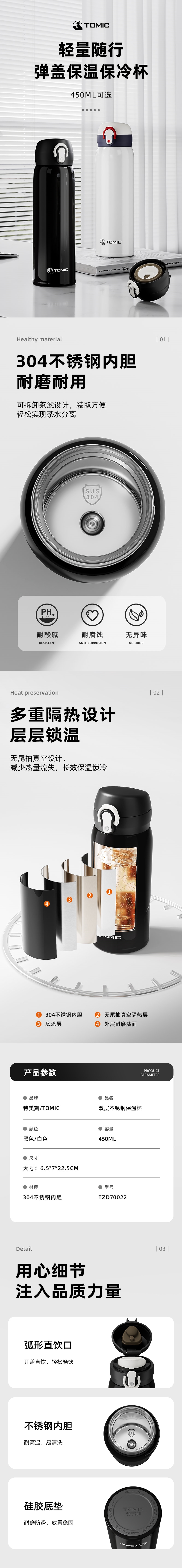 商品名称:TOMIC/特美刻450毫升弹跳盖保温杯TDZ70022