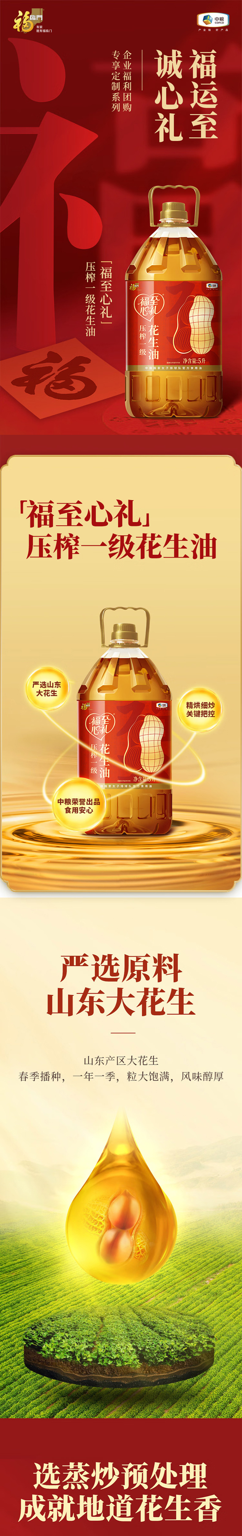 中粮福临门福至心礼压榨花生油5L