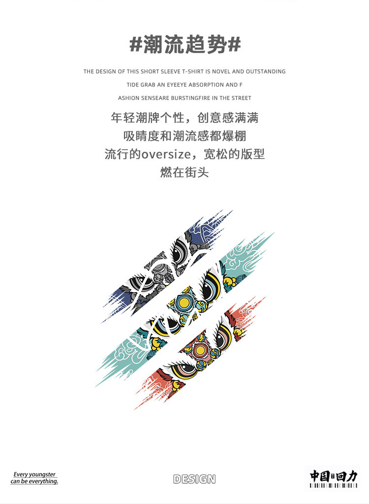 商品名称:【100%纯棉】国潮复古风夏季宽松潮牌高街帅气男生短袖t恤衫 453459