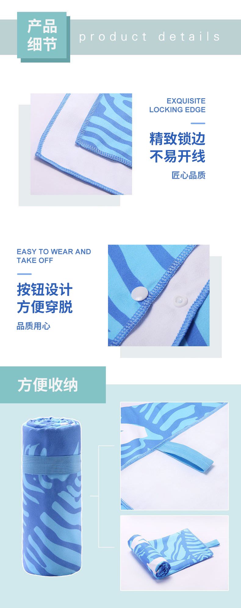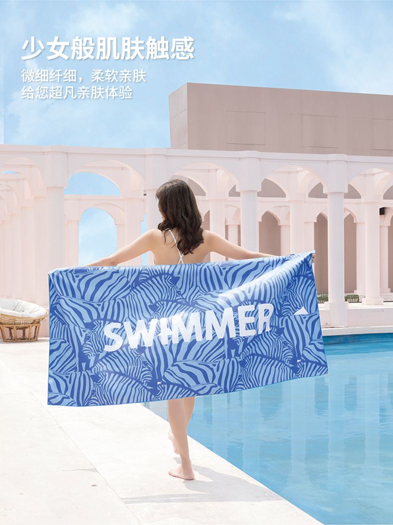速干巾蓝色斑马+白色泳镜泳帽鼻夹