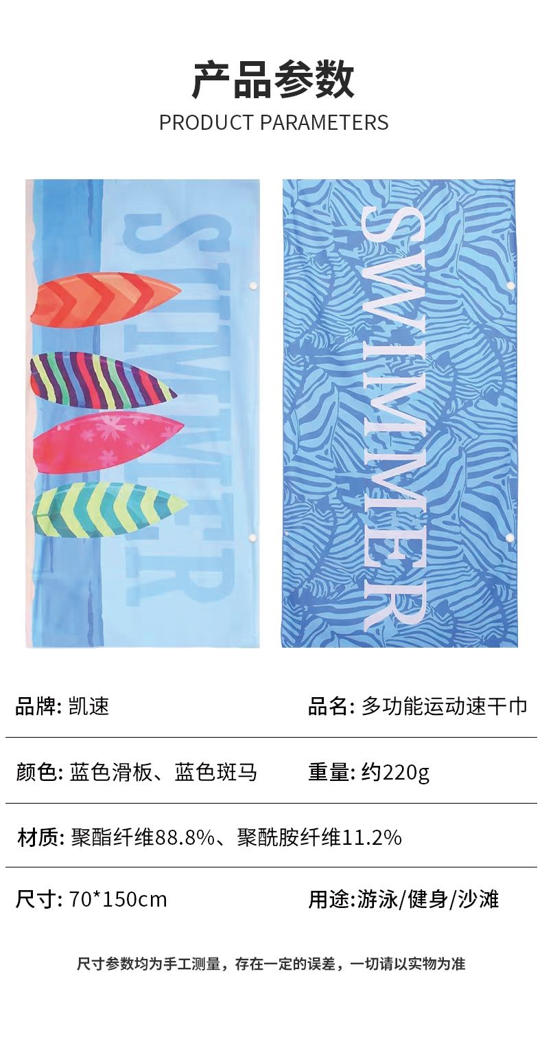 速干巾蓝色滑板+白色泳镜泳帽鼻夹