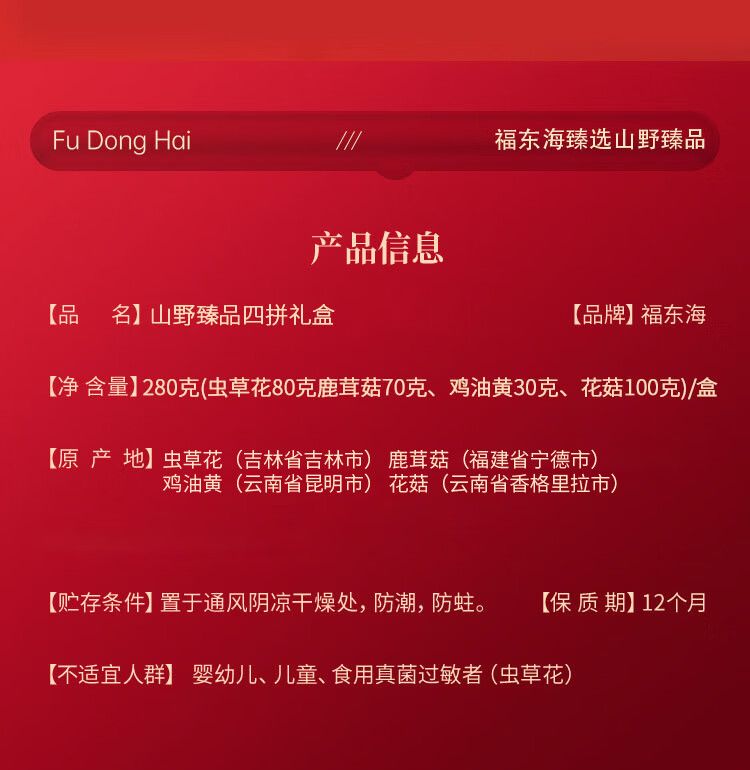 商品名称:福东海 山野臻品四拼礼盒280克