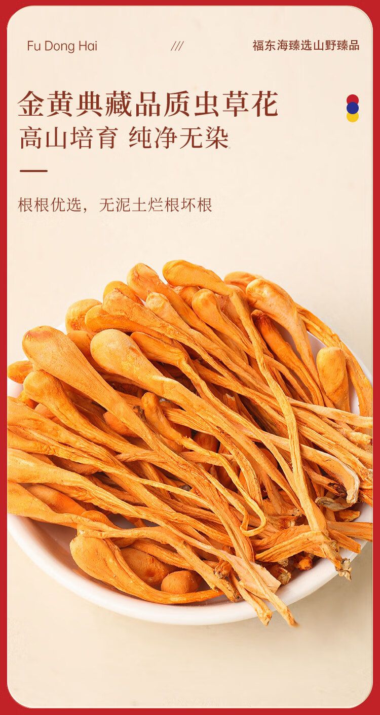 虫草花80克、鹿茸菇70克、鸡黄油30克、花菇100克