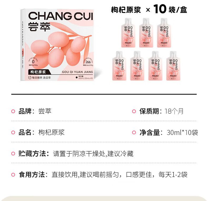 商品名称:尝萃300ml红枸杞原浆T+300ml黑枸杞原浆T