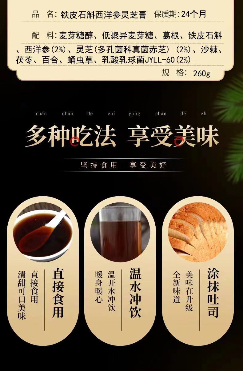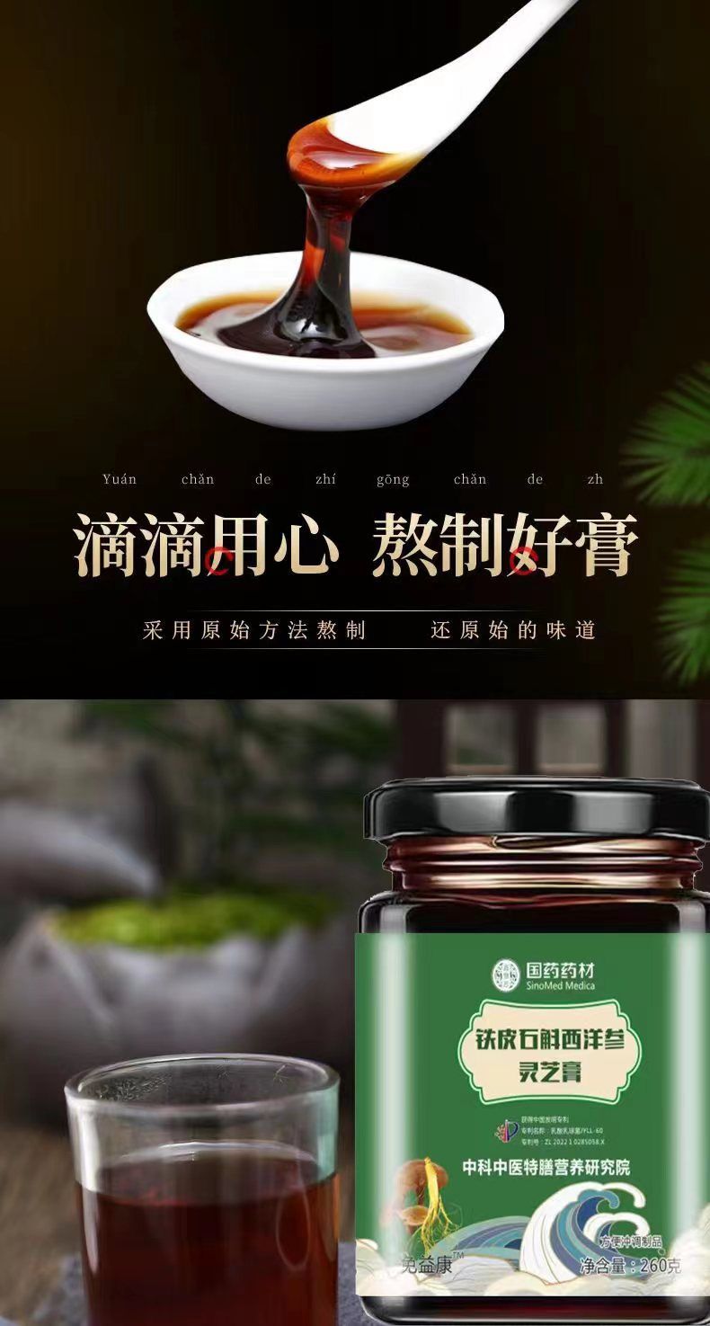 商品名称:3瓶 国药药材 铁皮石斛灵芝西洋参膏 增强免疫力 古法熬制膏