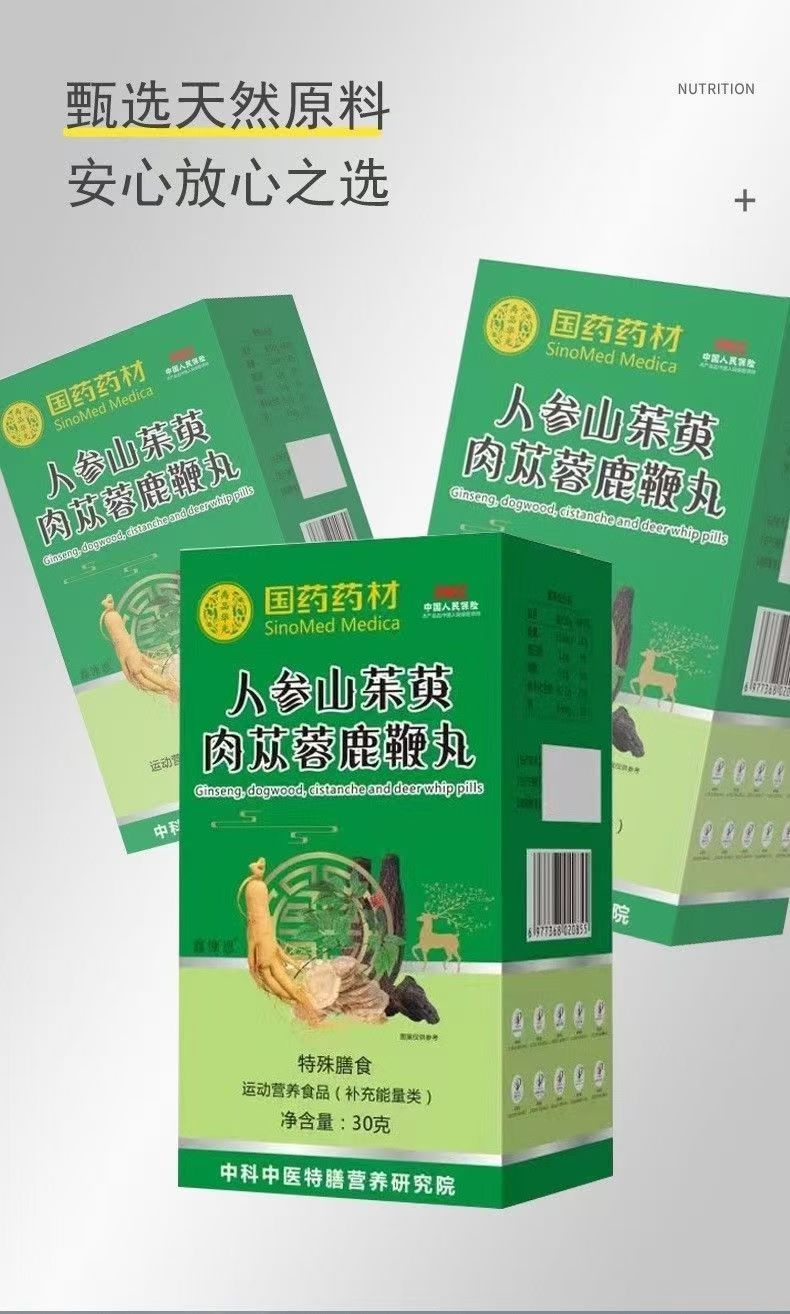 3瓶国药药材人参山茱肉苁蓉鹿鞭丸男性疲劳补充体力肾亏精力不济吃用