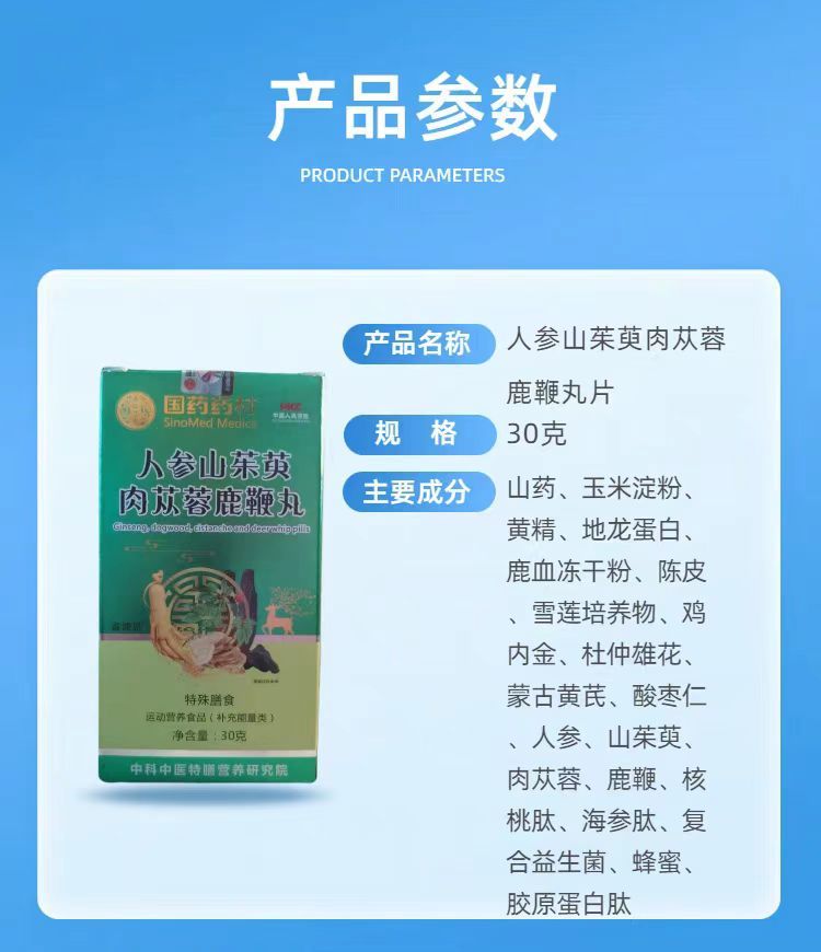 商品名称:3瓶国药药材人参山茱肉苁蓉鹿鞭丸男性疲劳补充体力肾亏精力不济吃用