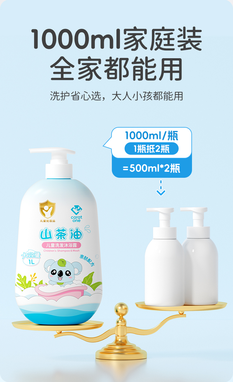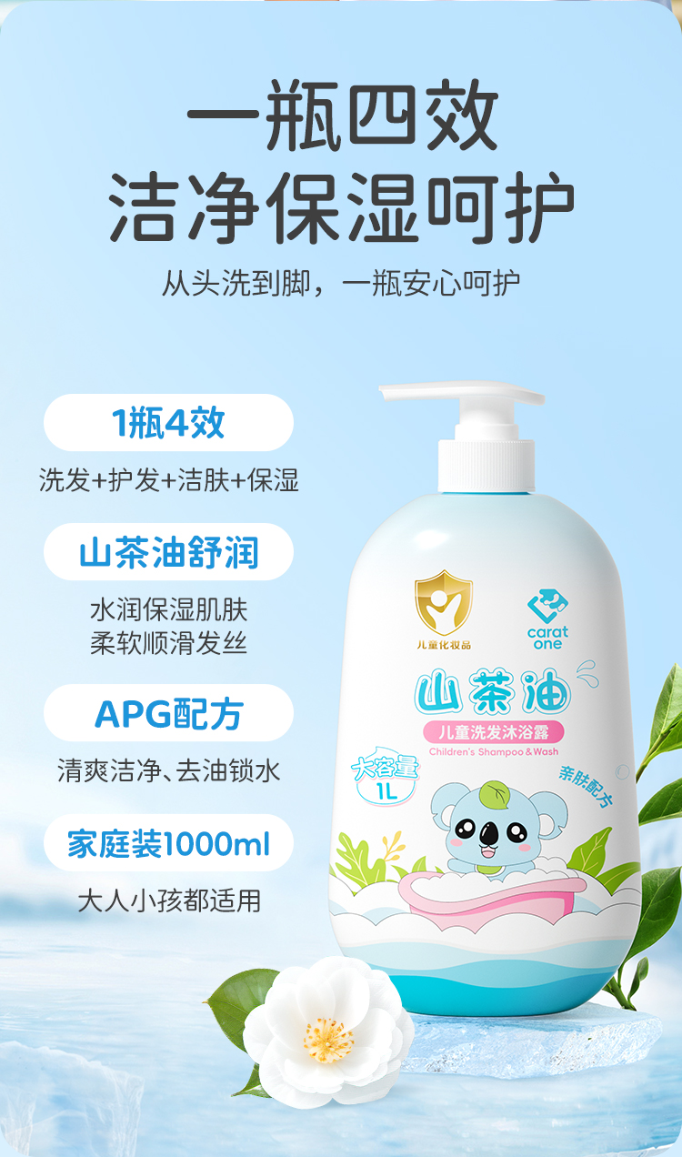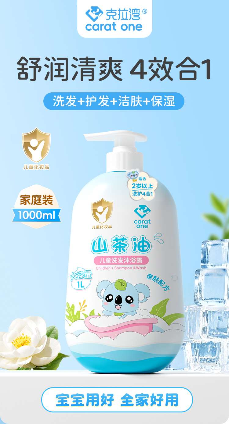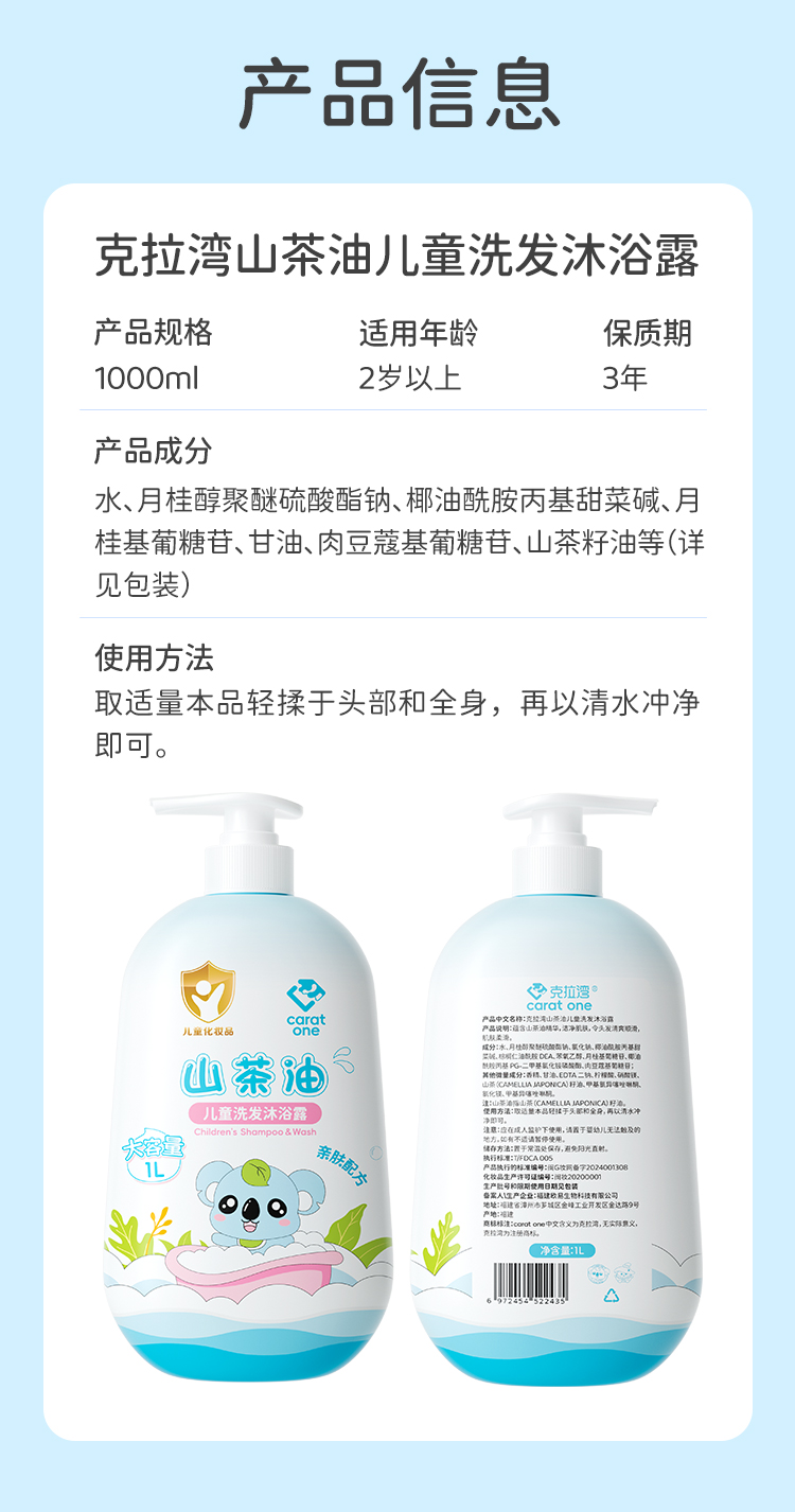 商品名称:克拉湾山茶油儿童洗发水沐浴露二合一宝宝成人洗澡液柔顺护发保湿1L装大容量全家共享