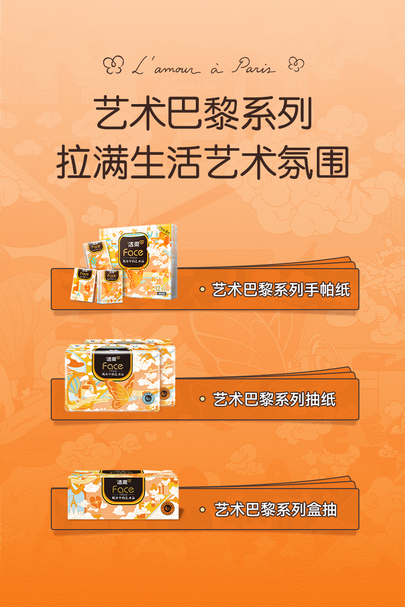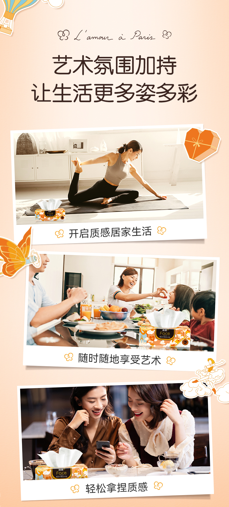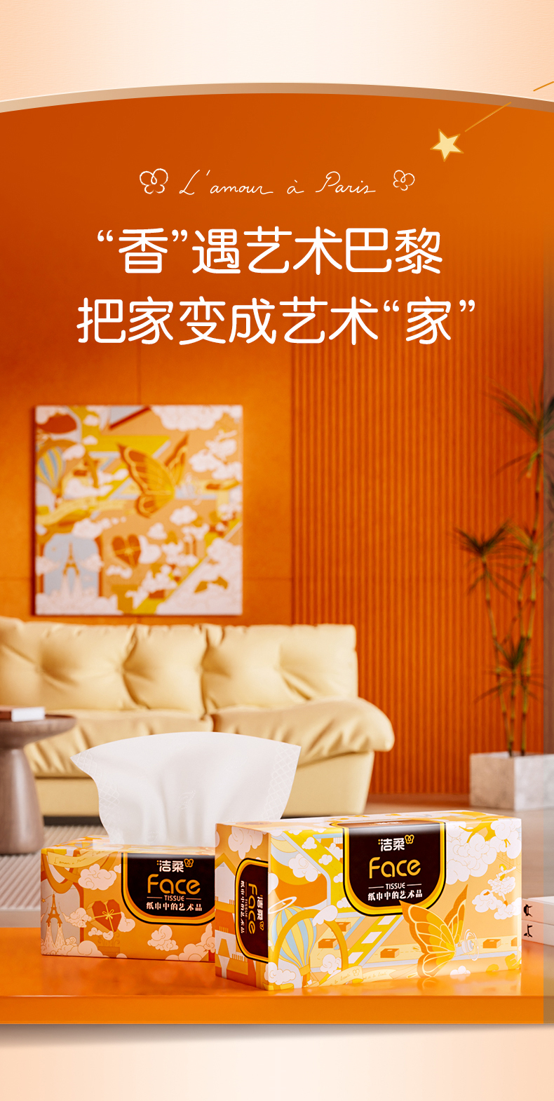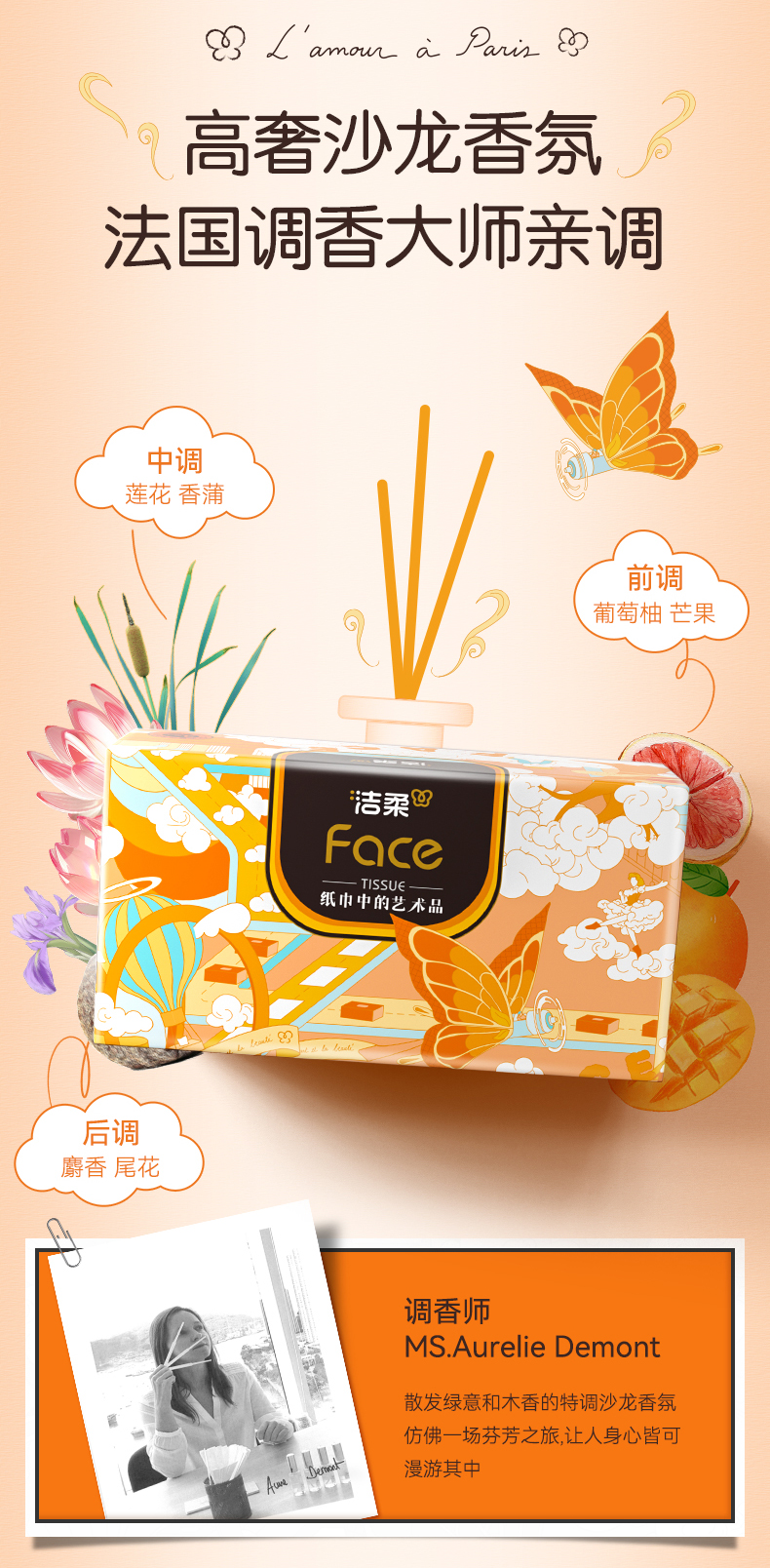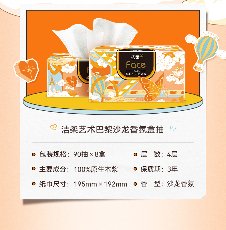 商品名称:C&S/洁柔艺术巴黎沙龙香氛盒抽纸面巾整箱4层90抽*8盒BH210-08E