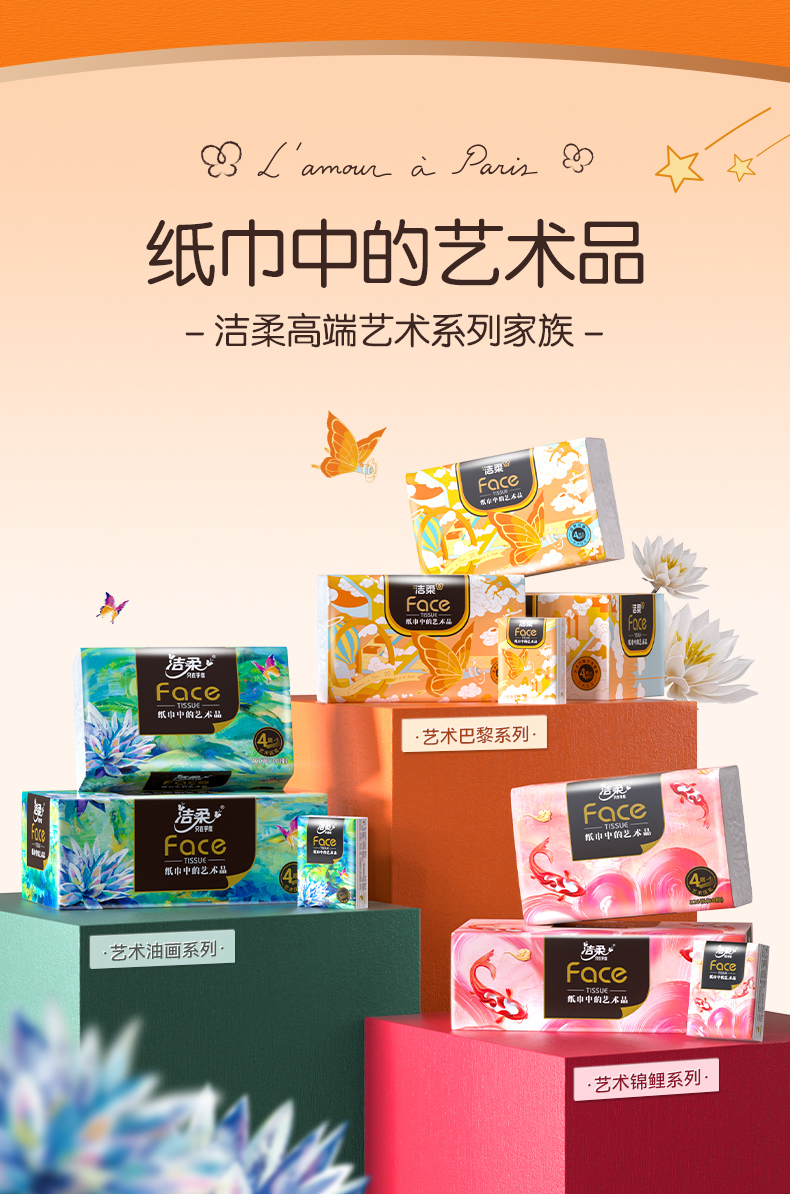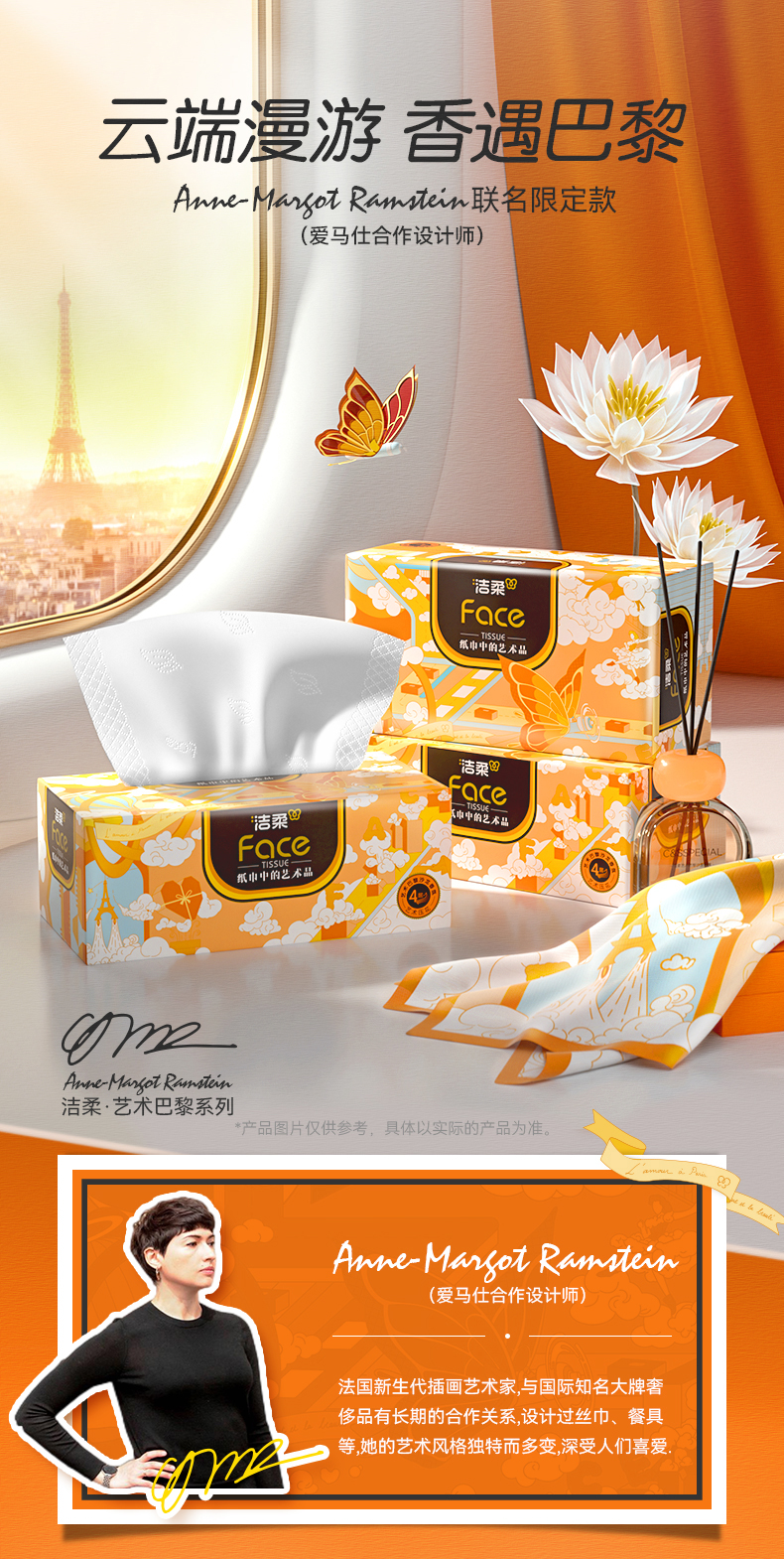 C&S/洁柔艺术巴黎沙龙香氛盒抽纸面巾整箱4层90抽*8盒BH210-08E