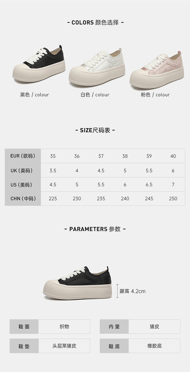 商品名称:休闲鞋女款休闲鞋厚底帆布鞋百搭鞋子女厚底鞋女增高透气 073551