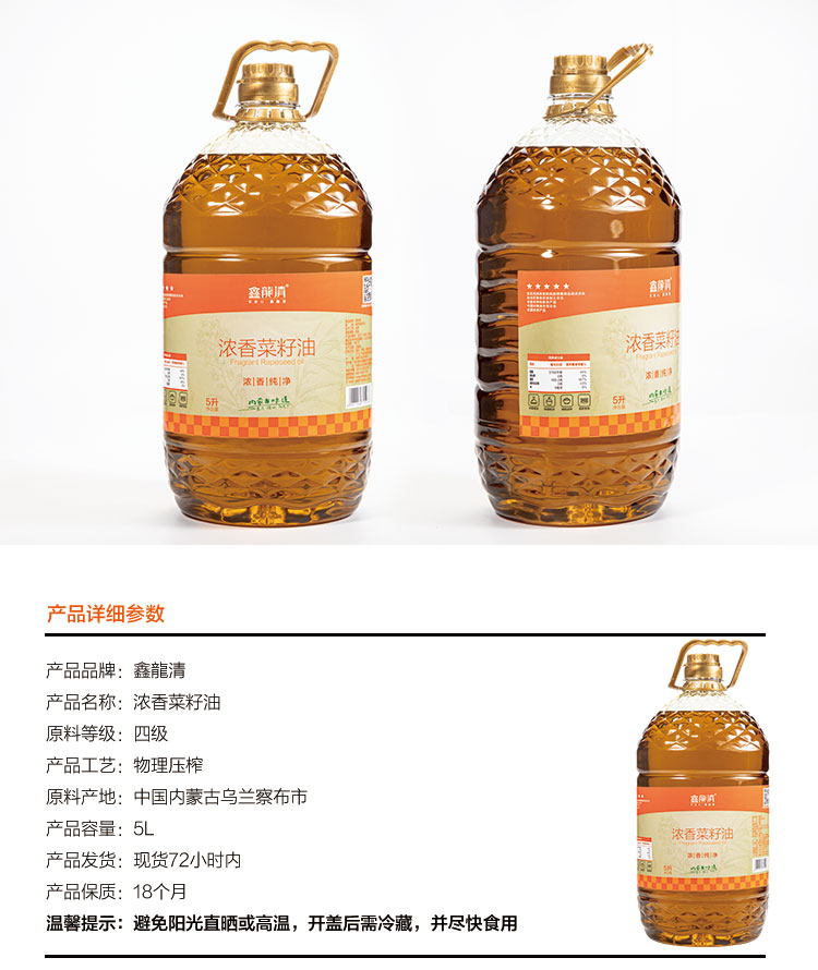 商品名称:鑫龍清浓香菜籽油5L