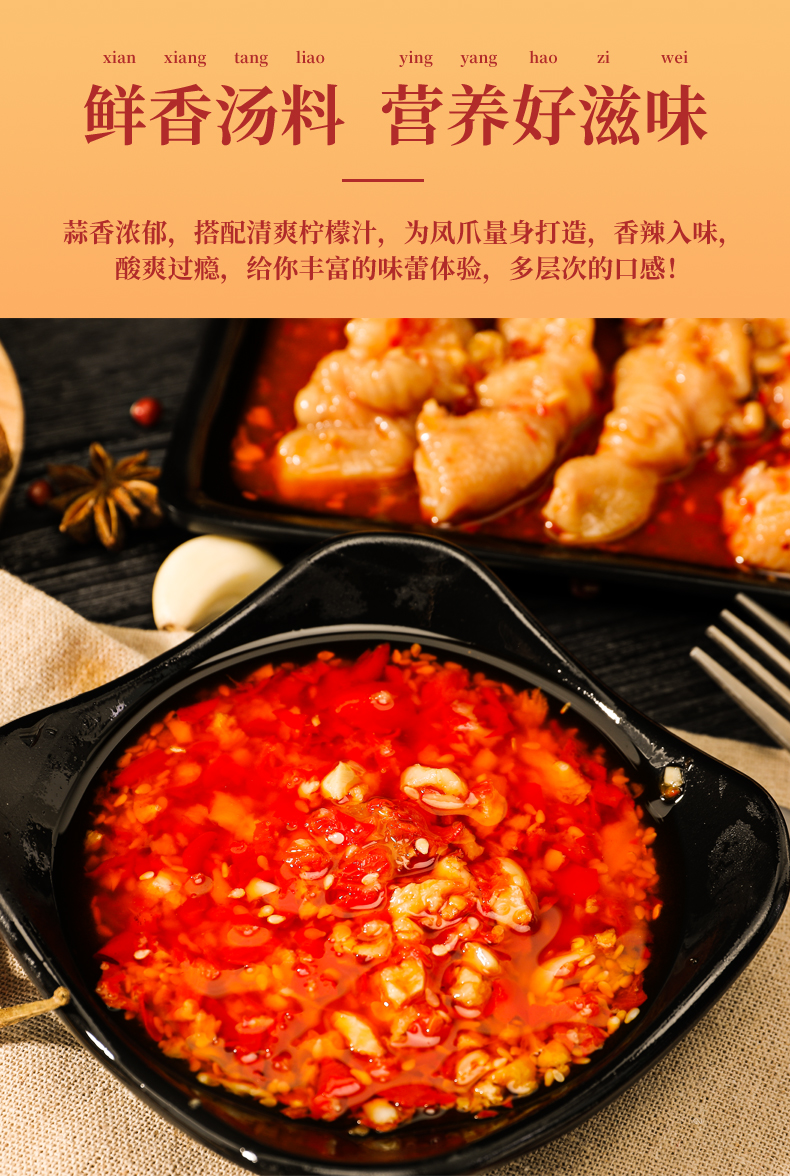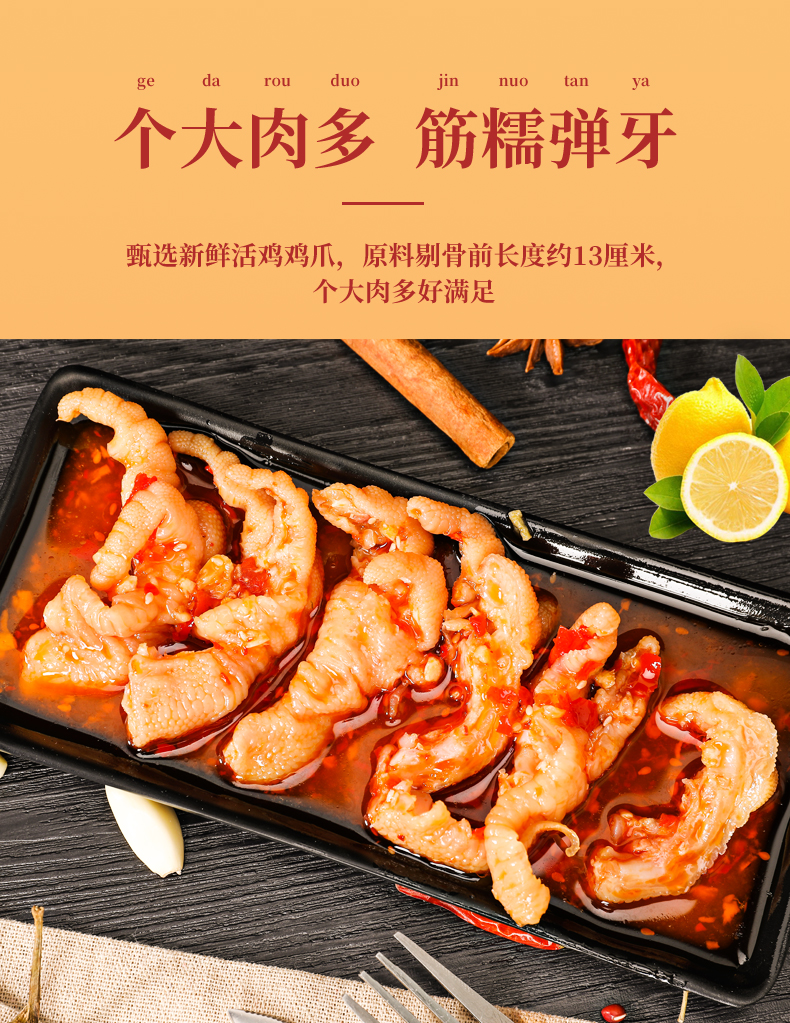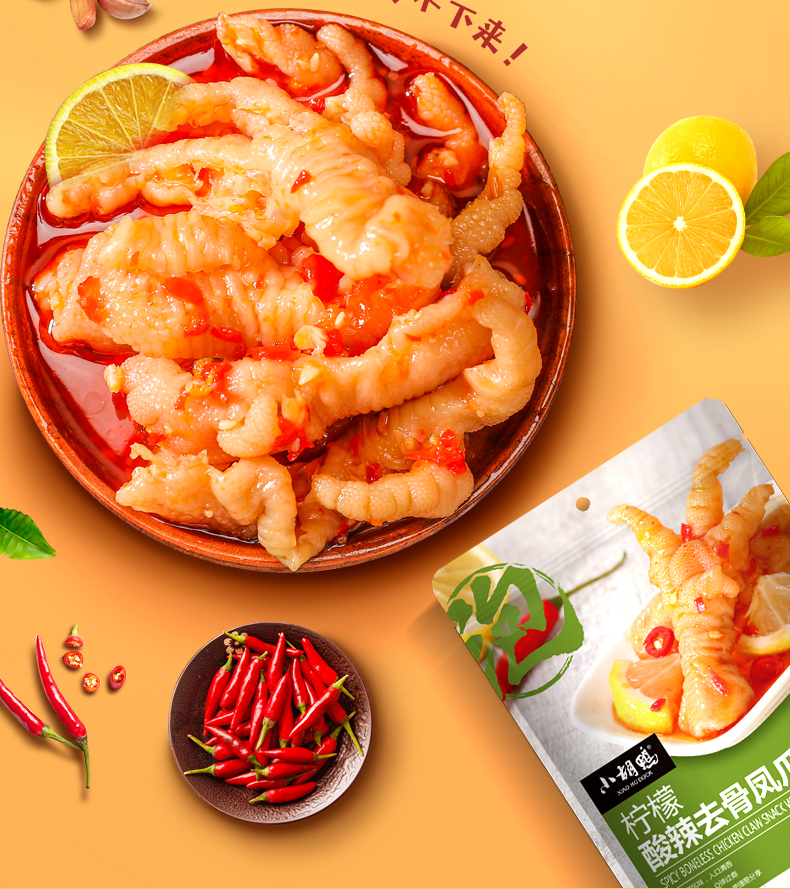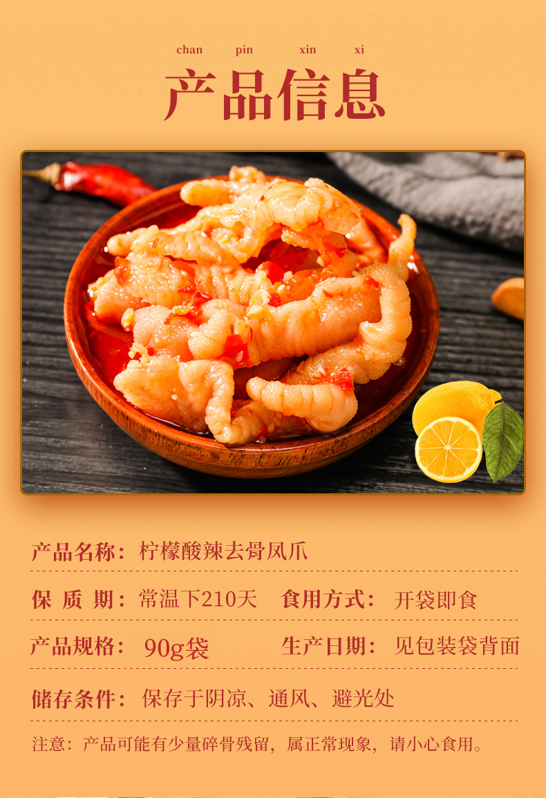 规格:香辣味鸭脖118g+香辣味鸭翅118g+柠檬酸辣去骨凤爪90g