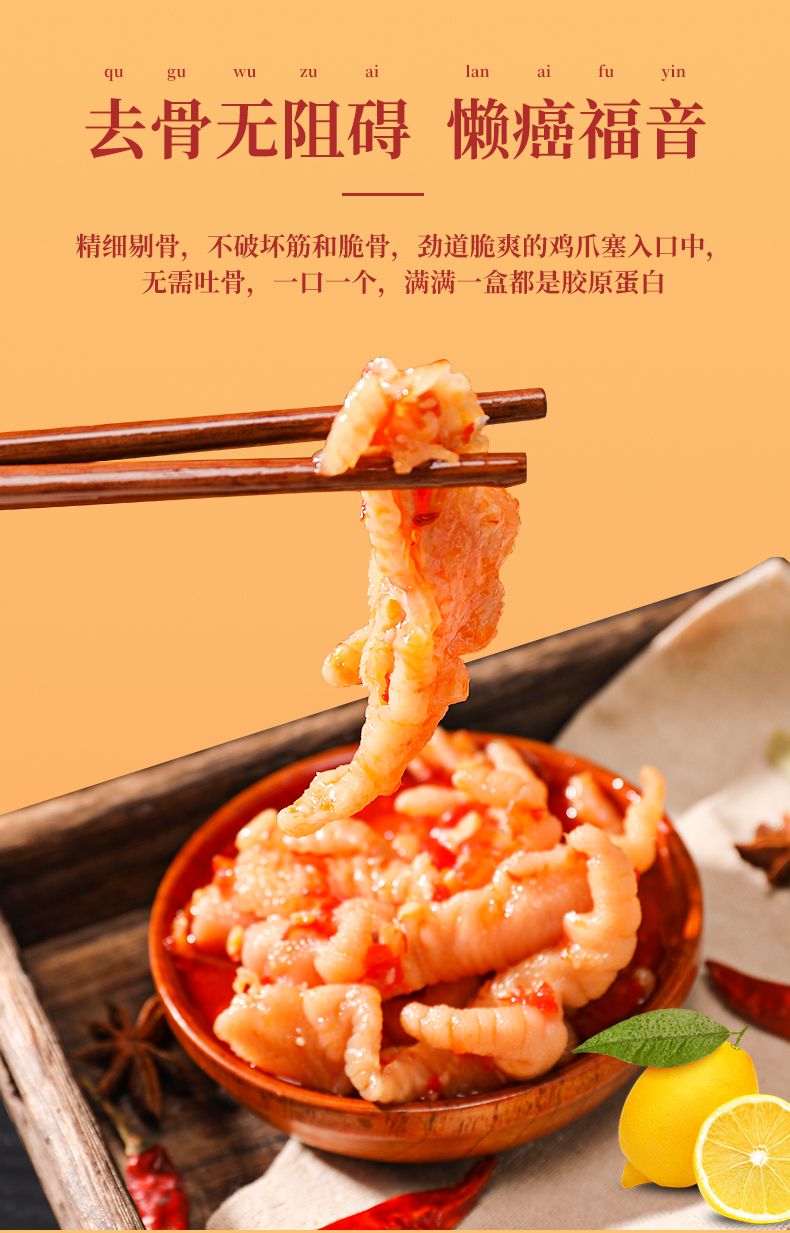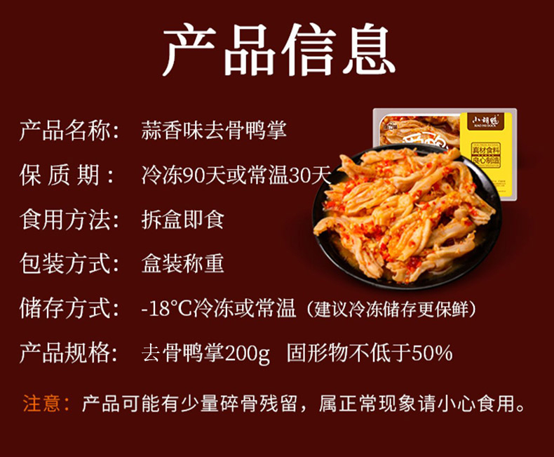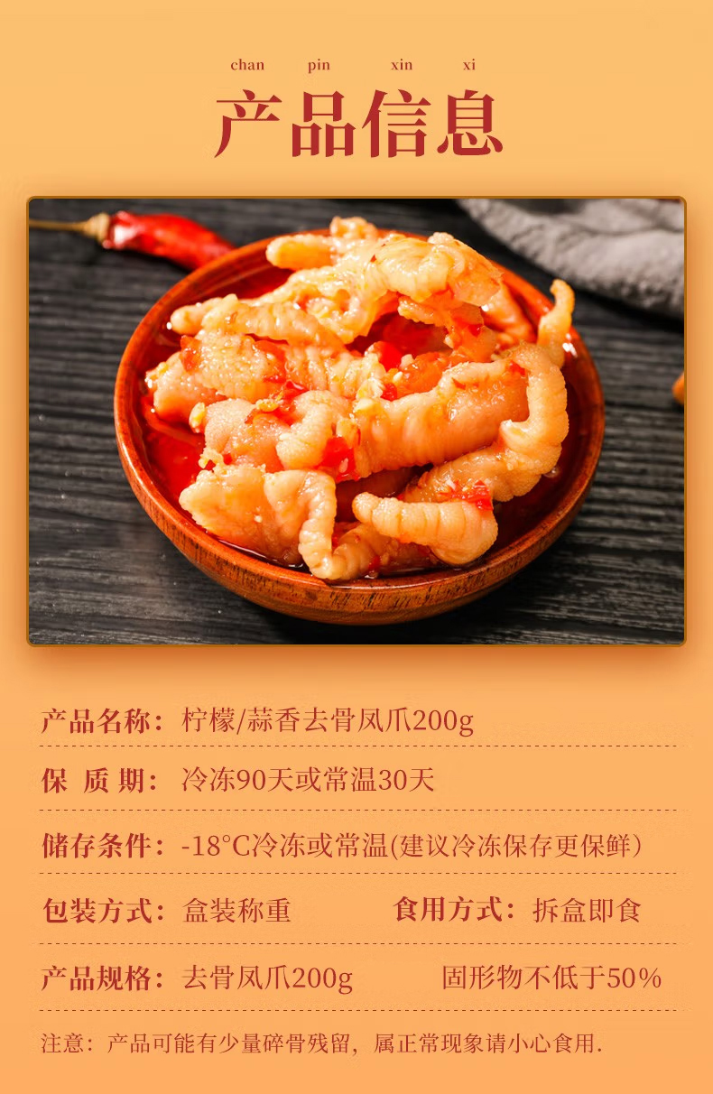 规格:柠檬酸辣去骨凤爪200g+蒜香香辣去骨凤爪200g+蒜香香辣去骨鸭掌200g