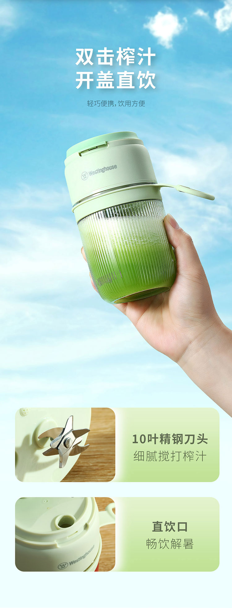 Westinghouse/西屋400毫升便携式榨汁杯-抹茶绿WSX35W