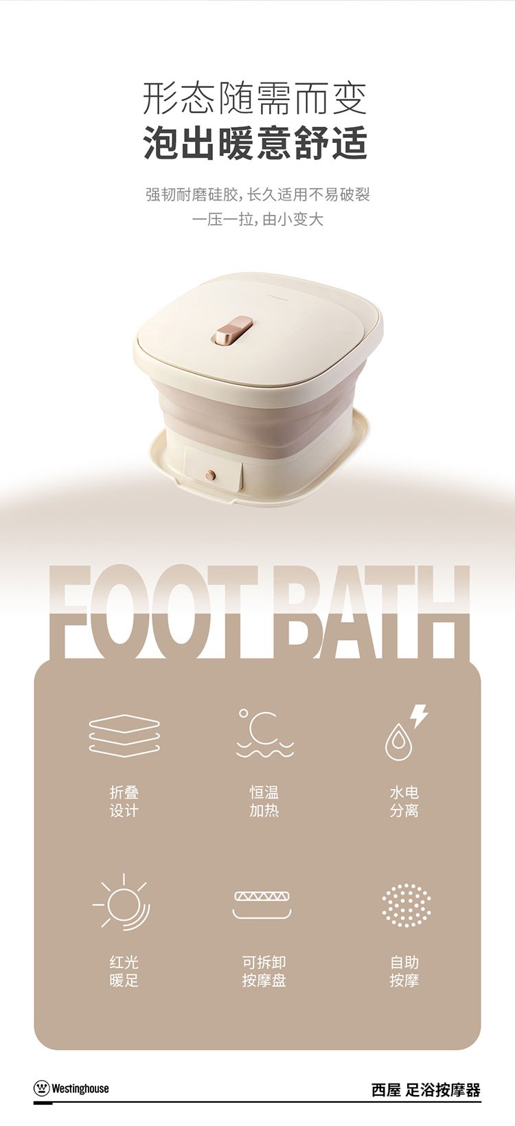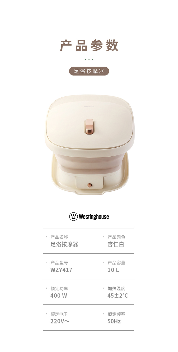 商品名称:Westinghouse/西屋10升足浴按摩器-杏仁白WZY417