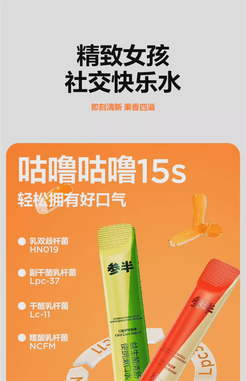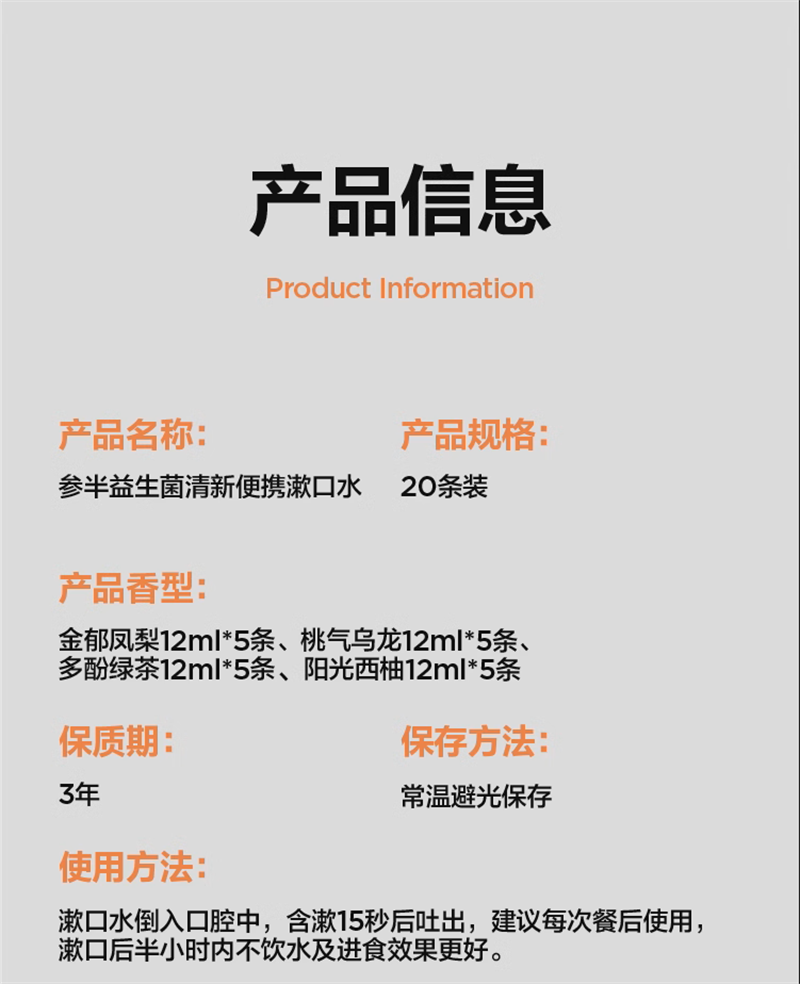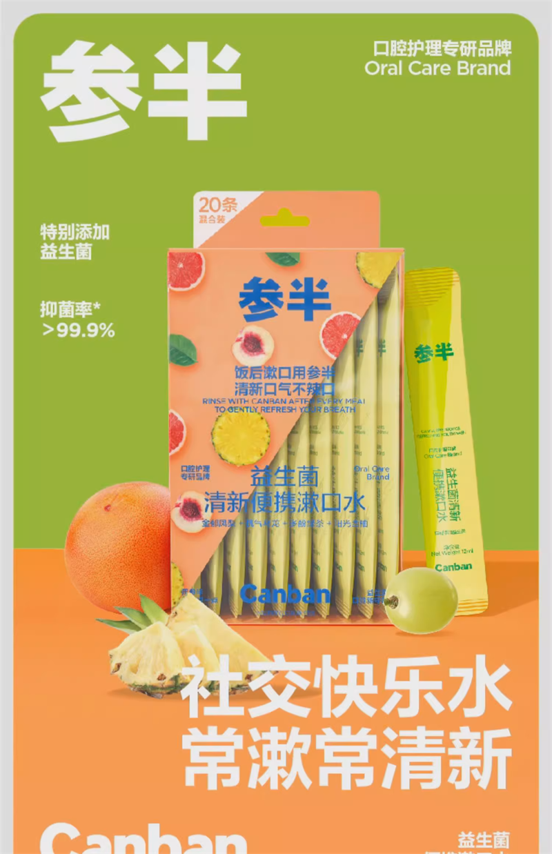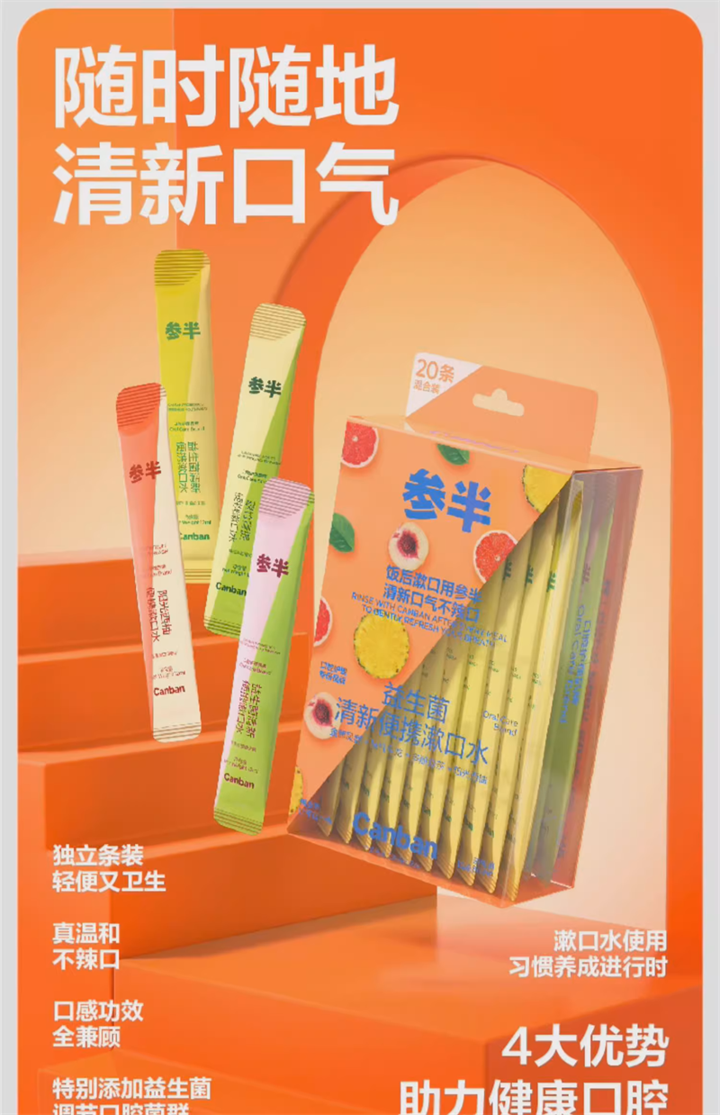 商品名称:参半益生菌清新便携漱口水整盒-混合口味12ml*20条