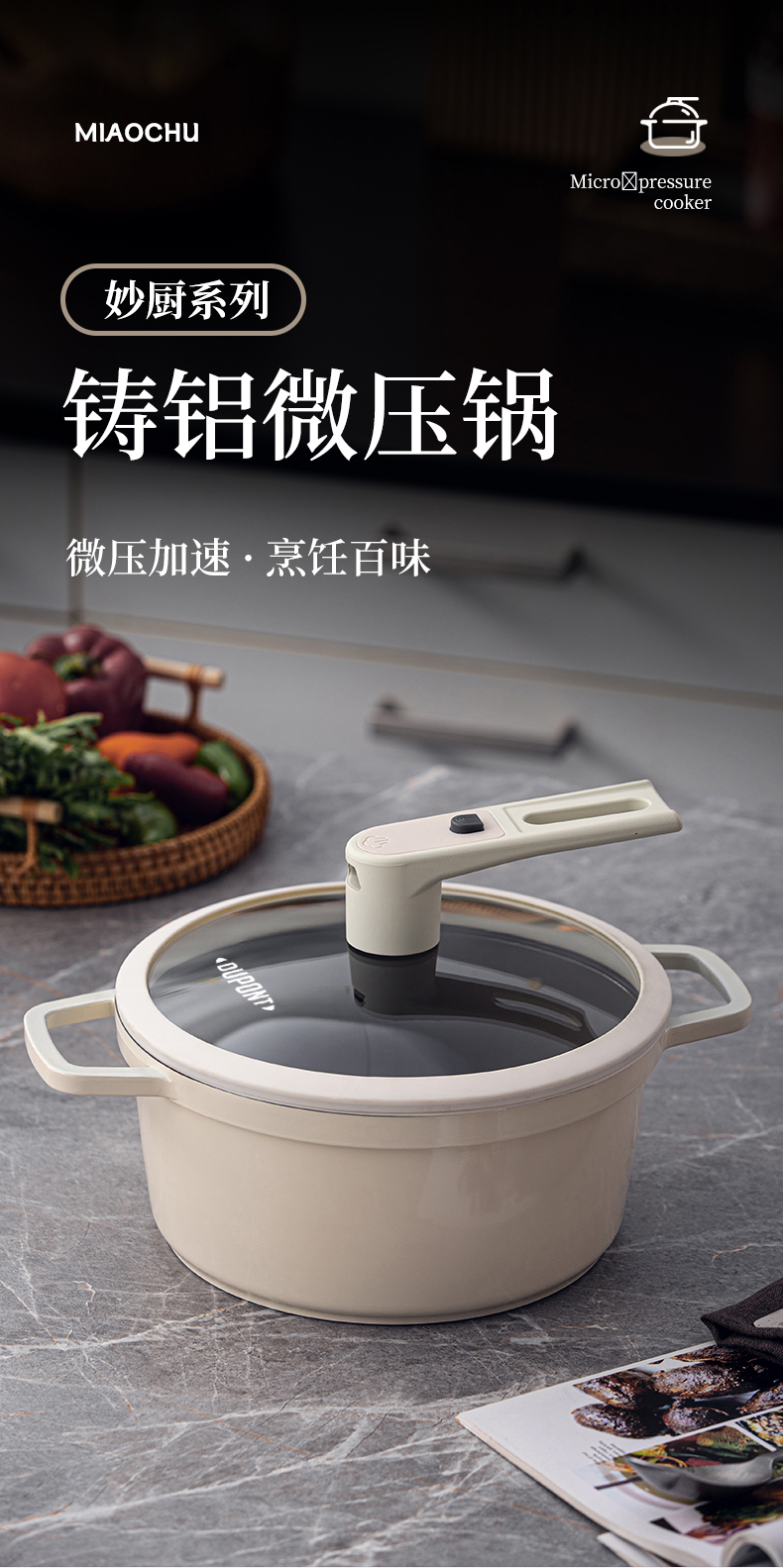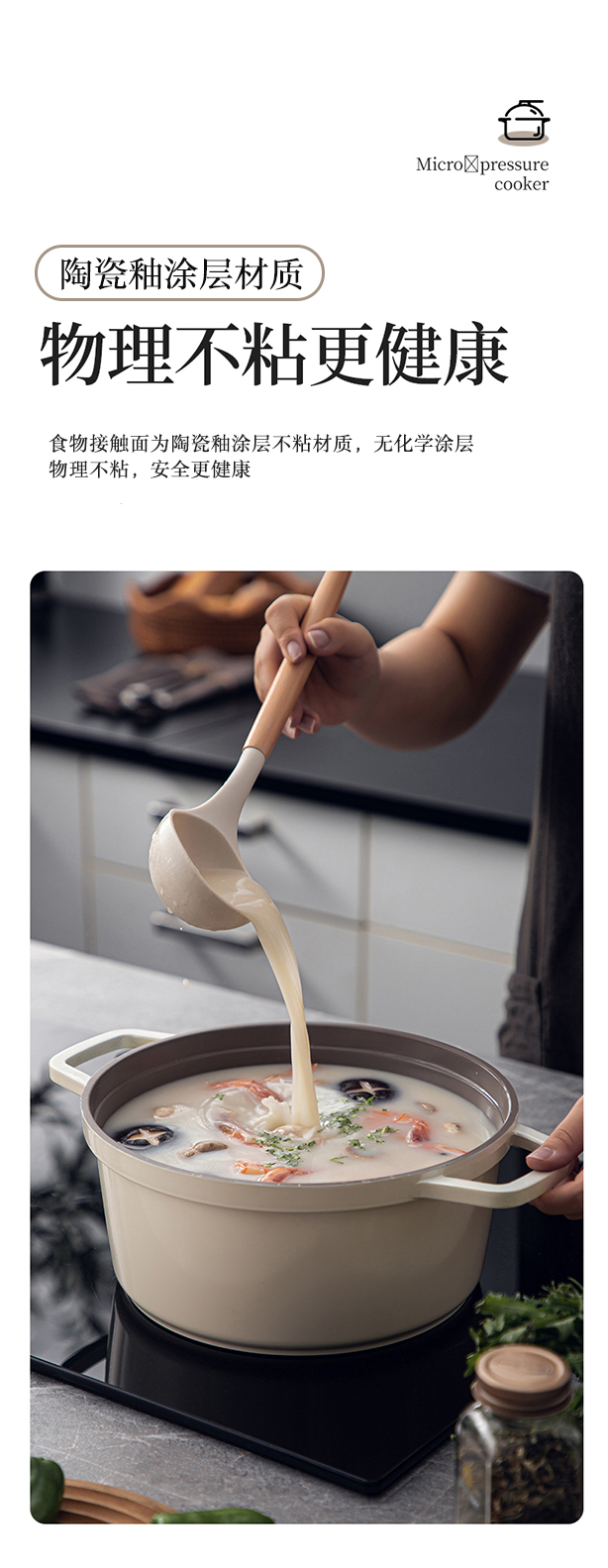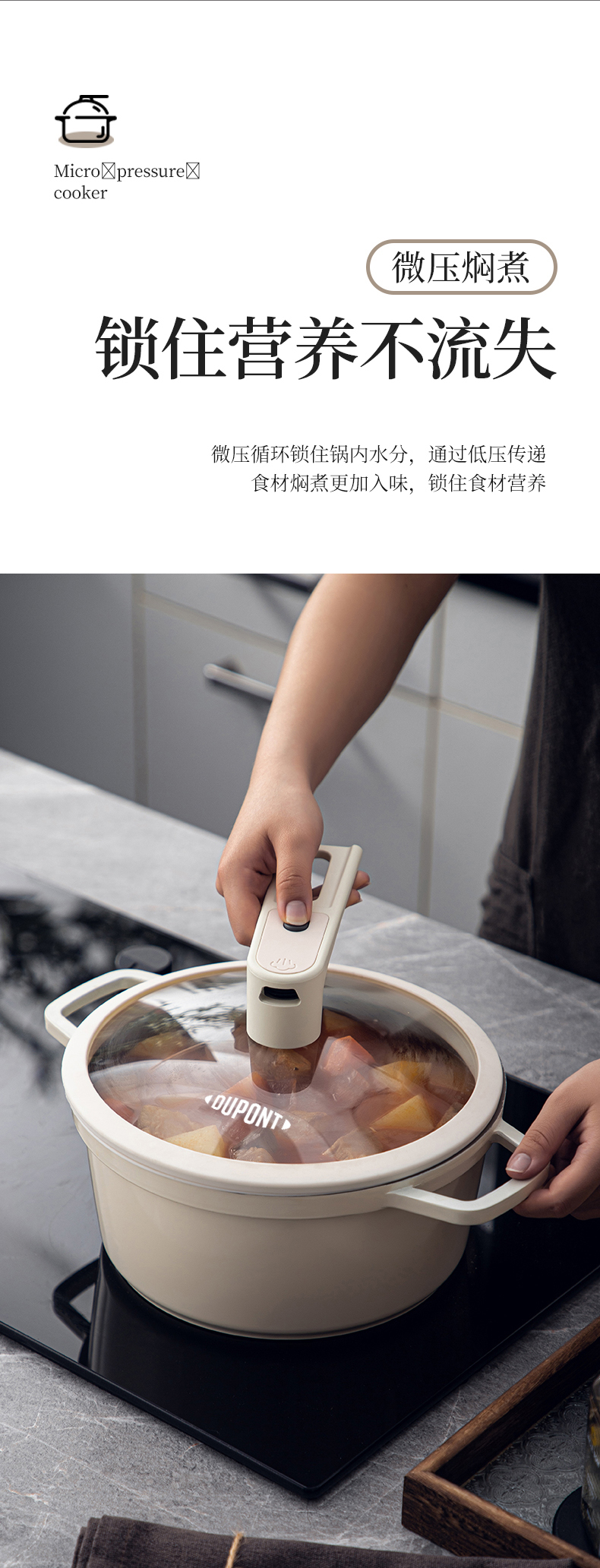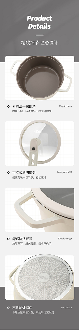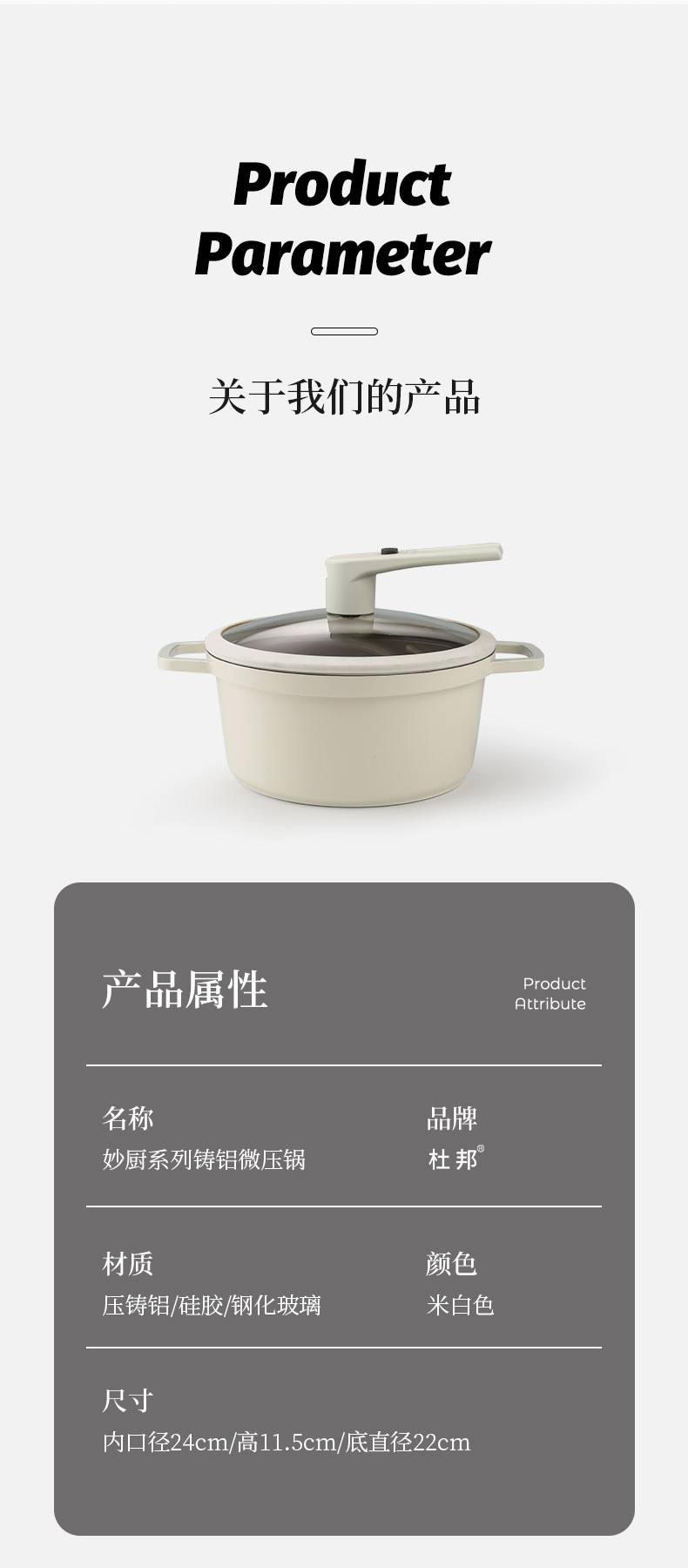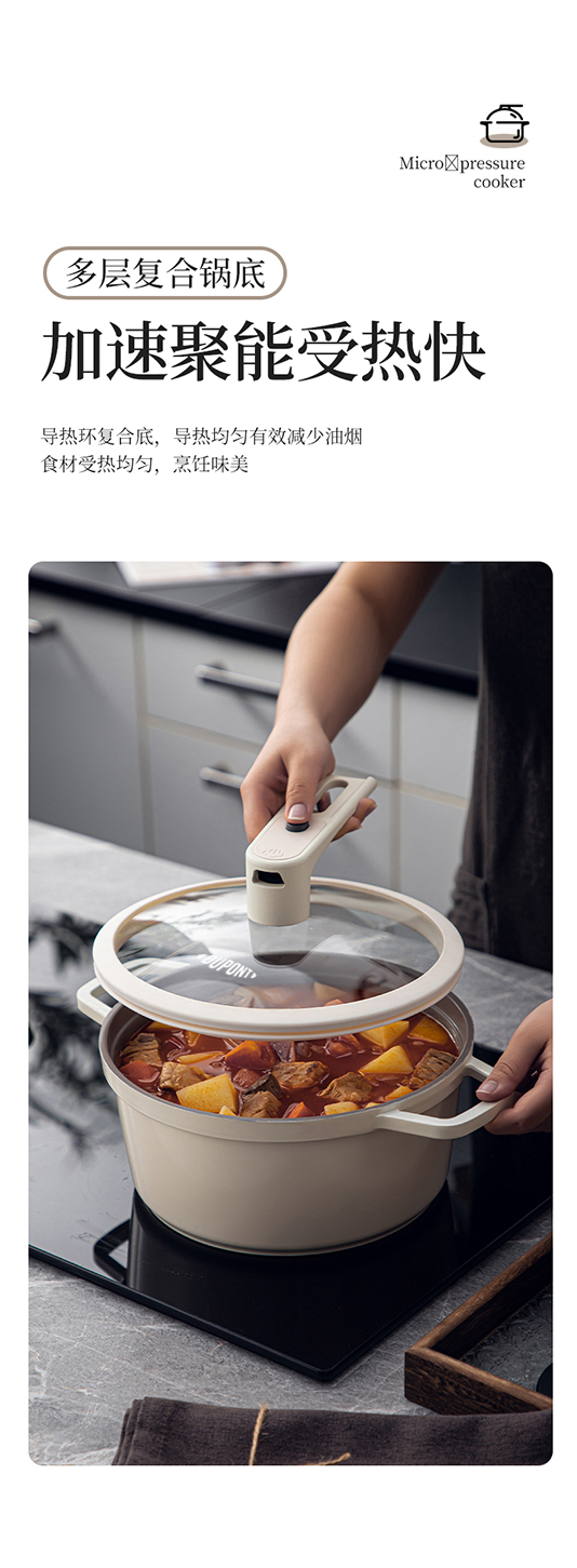 商品名称:Dupont/杜邦24cm妙厨系列铸铝微压锅-米白色PWYGT-840