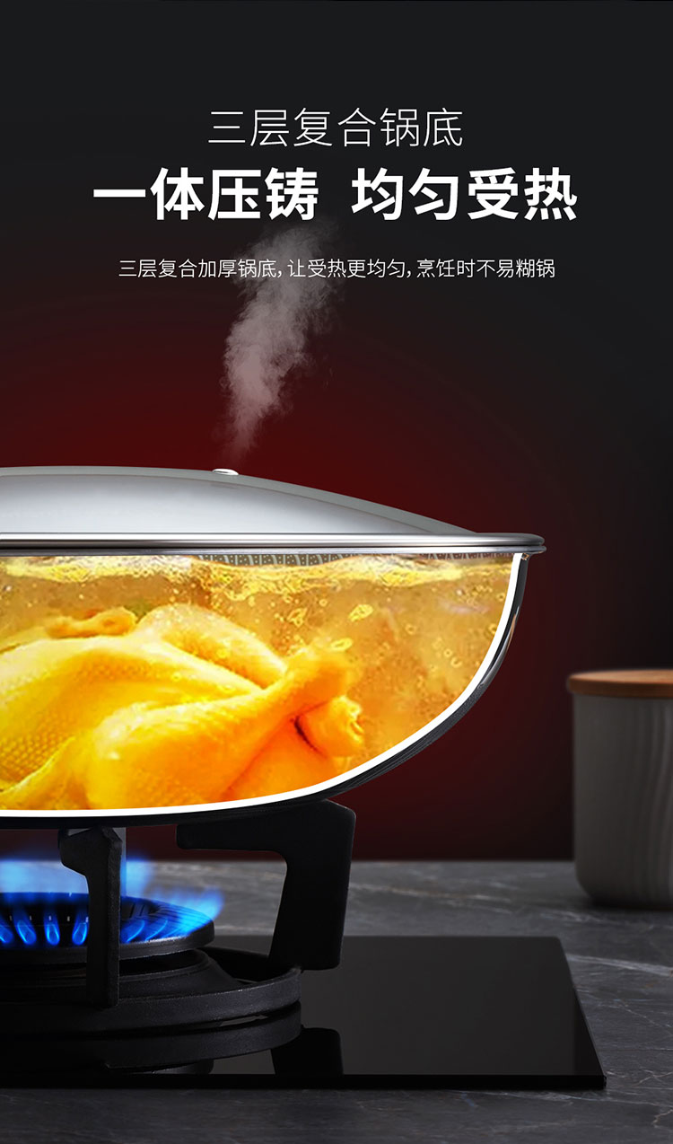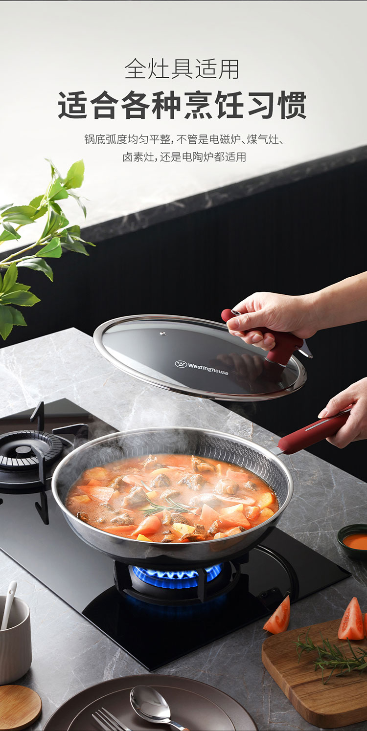 Westinghouse/西屋32cm带盖不锈钢双花炒锅WSCG32A