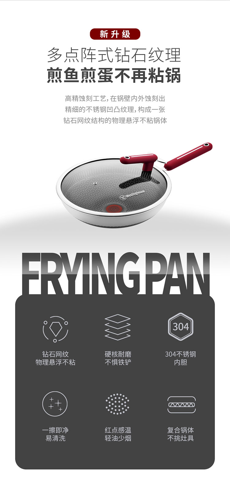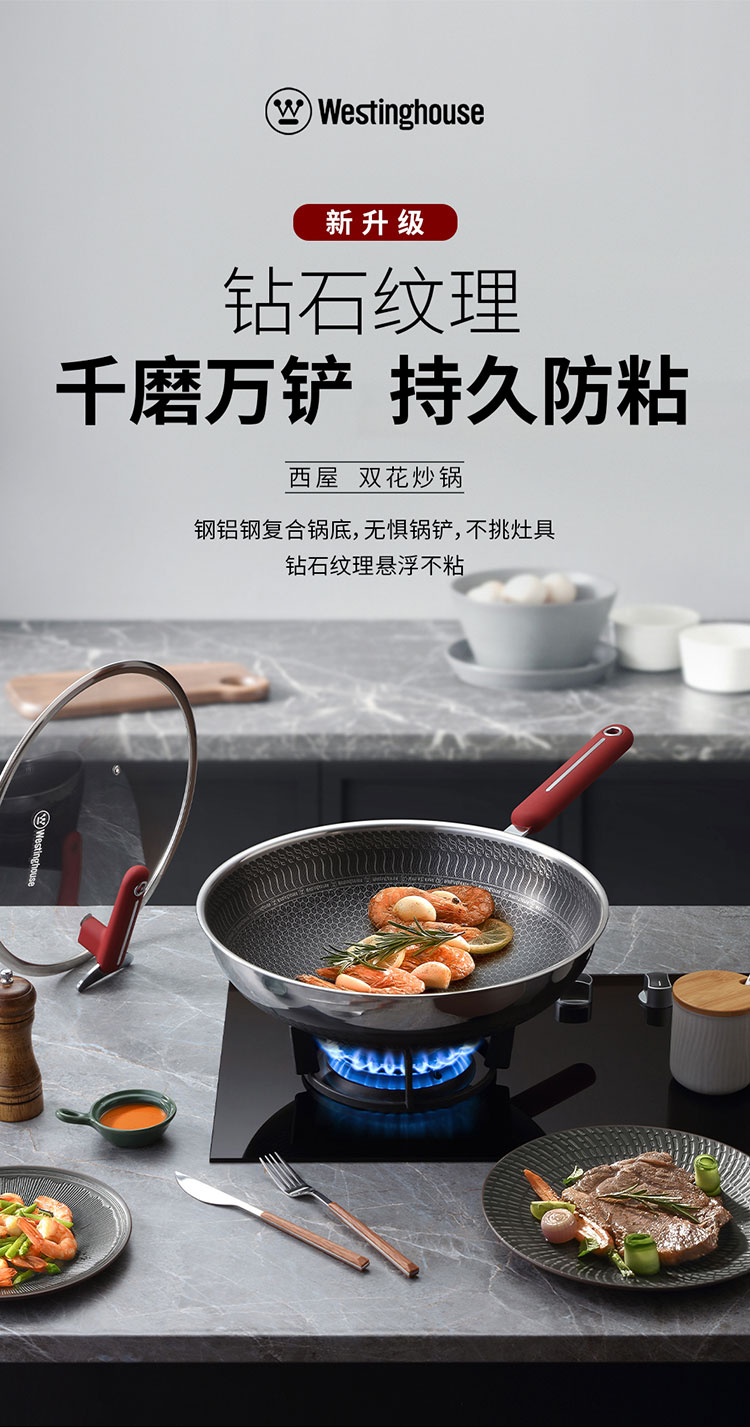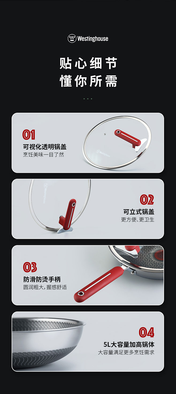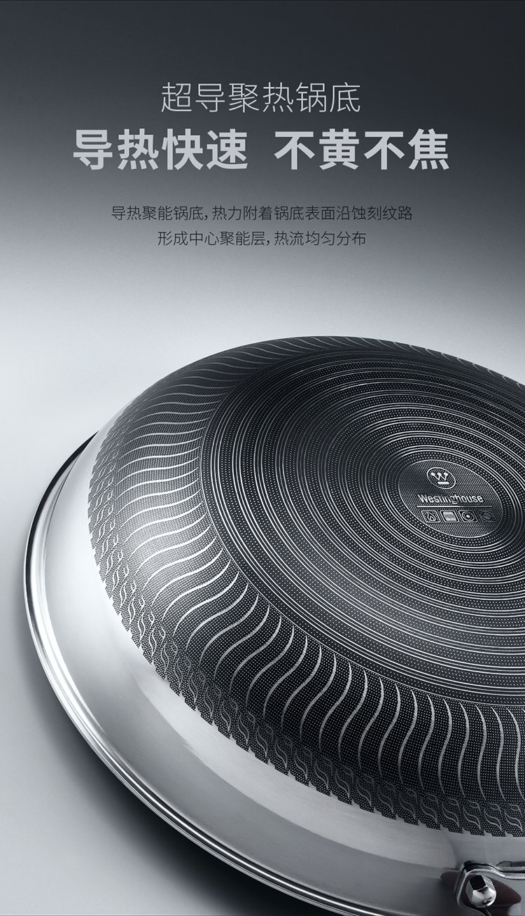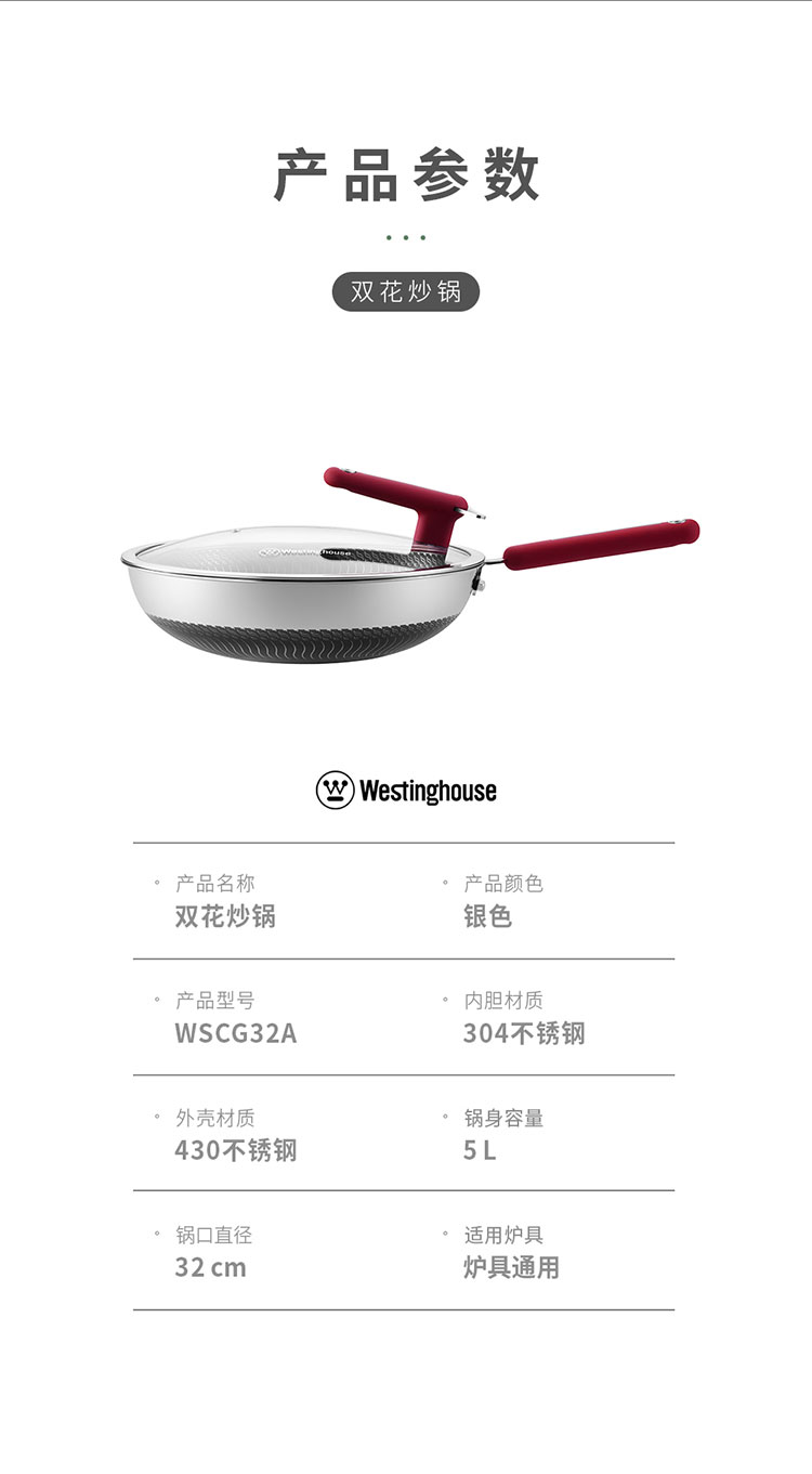 商品名称:Westinghouse/西屋32cm带盖不锈钢双花炒锅WSCG32A