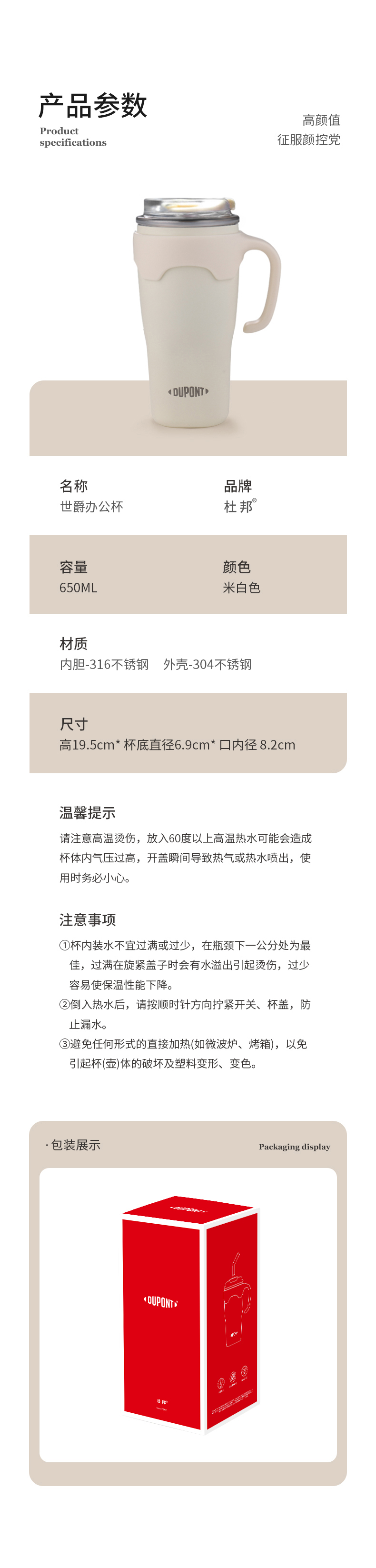 商品名称:Dupont/杜邦650毫升世爵办公杯-米白色PBD-013