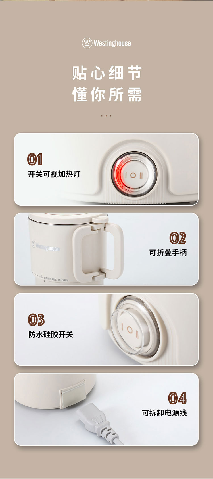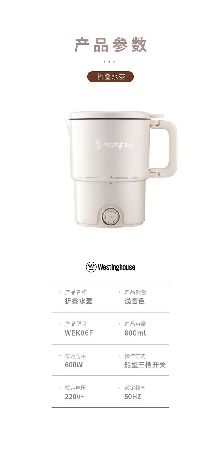 Westinghouse/西屋0.8升折叠水壶WEK06F