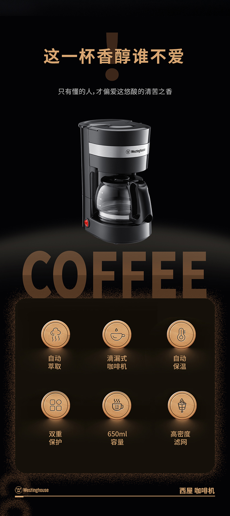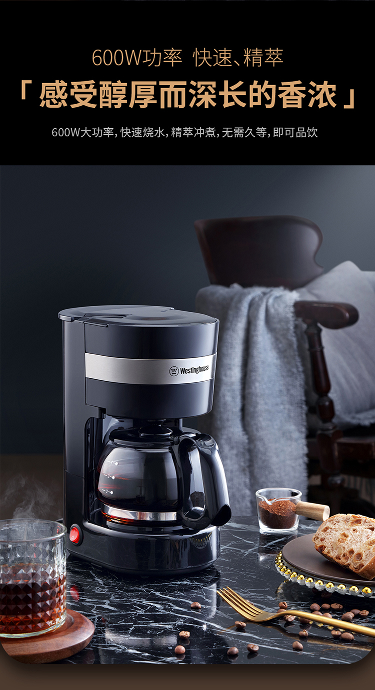 Westinghouse/西屋650毫升咖啡机-黑色WKFC65