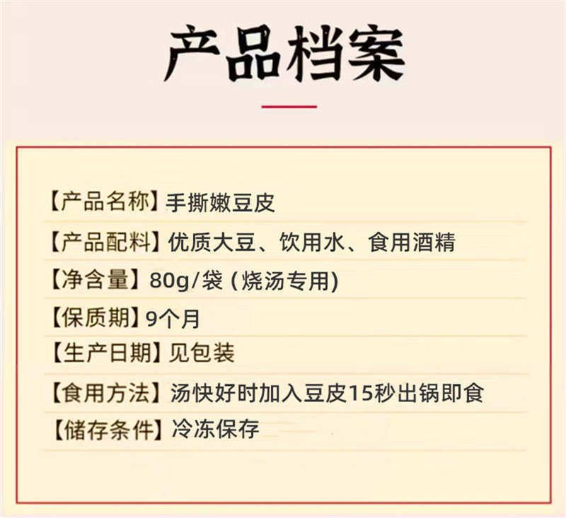 商品名称:喜粮晨手撕嫩豆皮80g*5煲汤食材