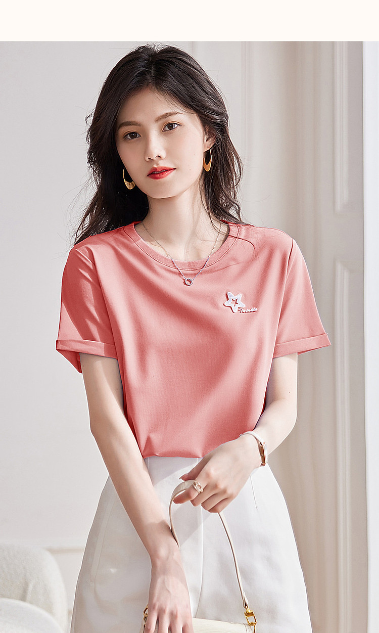 商品名称:【精致爱心牙刷绣女式t恤】夏季圆领绣花短袖t恤女 092289