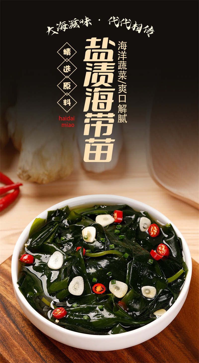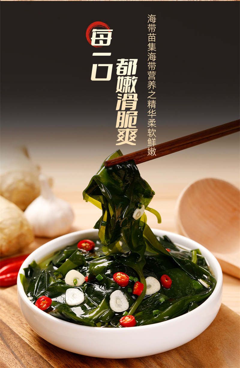易原产地直供,洁净海域,脆嫩爽滑,营养美味,清洗易泡发,配料干净,只有新鲜海带苗和食用盐