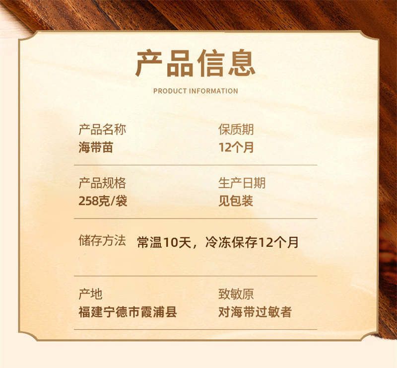 商品名称:喜粮晨海带嫩苗258克*2包