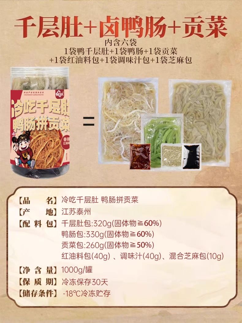 爬强头 冷吃毛肚鸭肠贡菜三拼 现做现发保质期30天 1000g