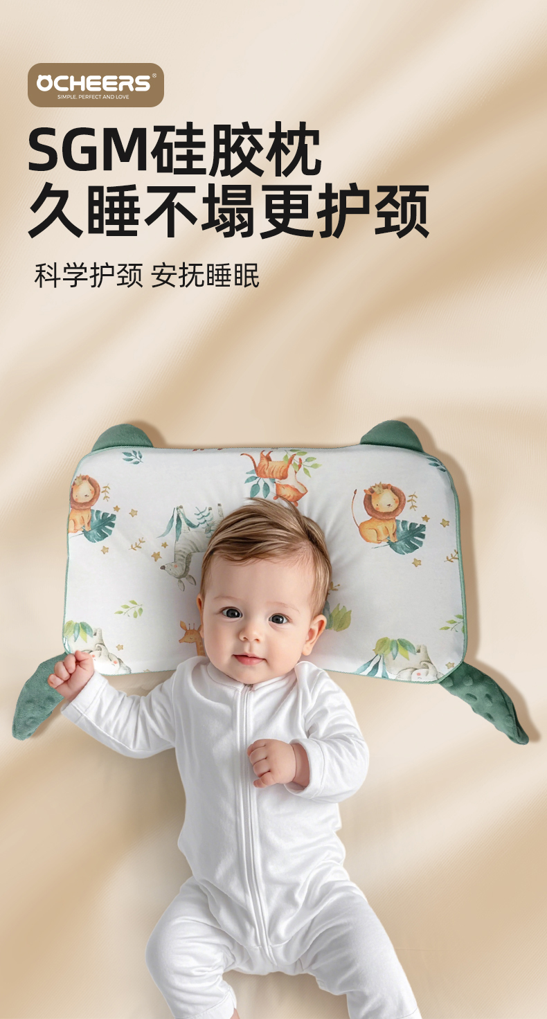 商品名称:英国好奇熊Ocheers儿童枕头0-6个月婴儿云片枕宝宝硅胶枕新生儿护颈枕