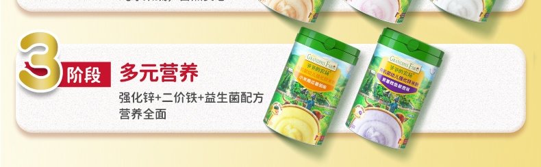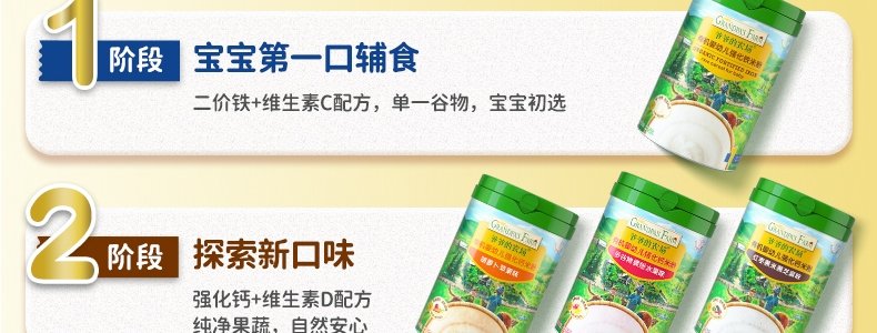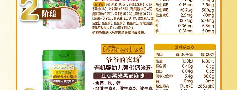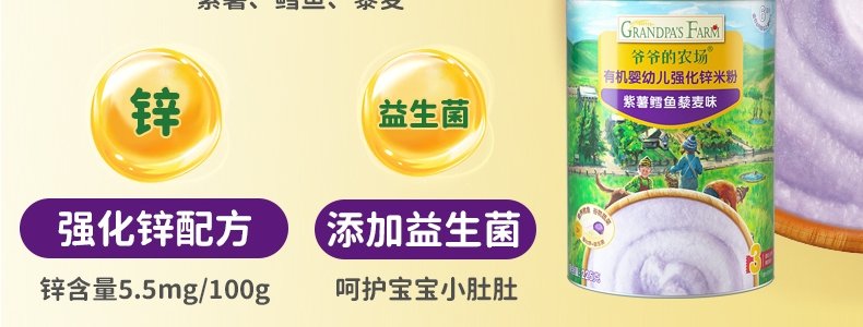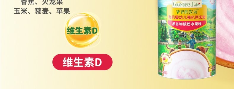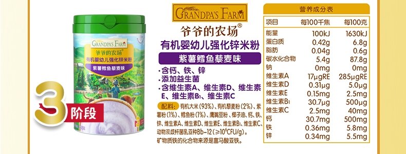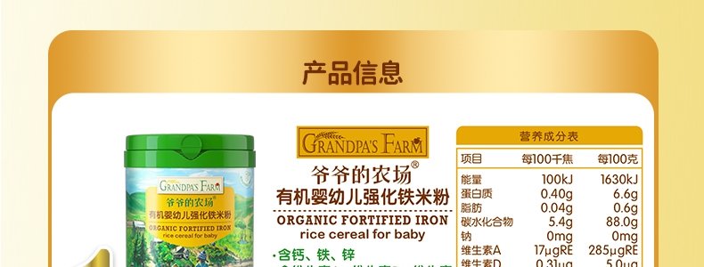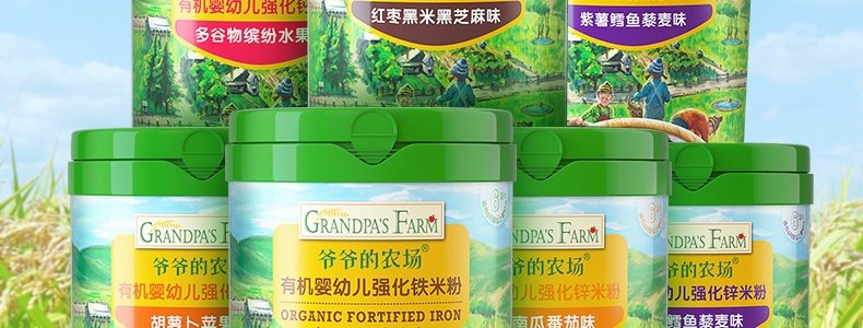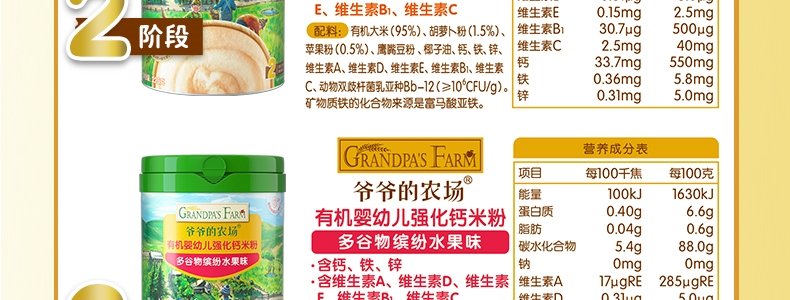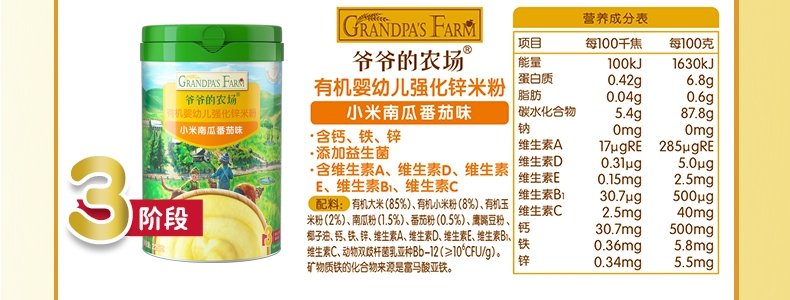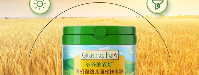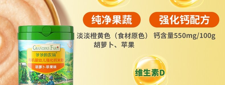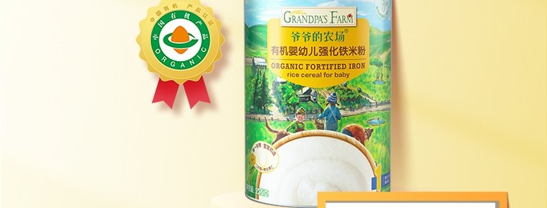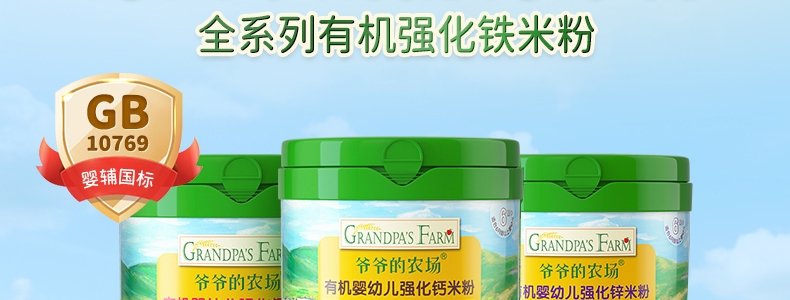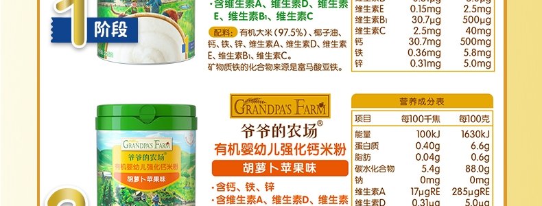 商品名称:爷爷的农场 有机婴幼儿强化铁米粉 225g*3罐【1阶+2阶】(原味+胡萝卜苹果味+多谷物缤纷水果味)