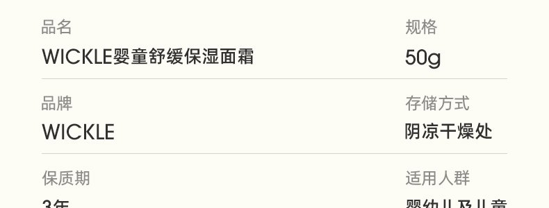 商品名称:惟呵(wickle)婴童舒缓保湿面霜 50g