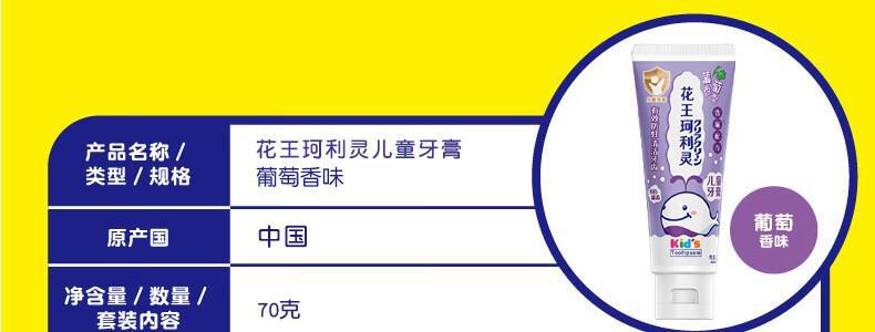 商品名称:日本 花王(Kao)珂利灵儿童牙育 味道随机 70g*3支装