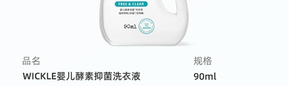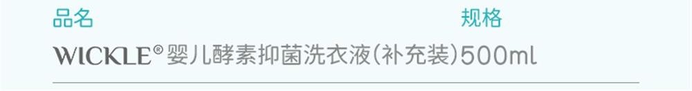 商品名称:惟呵(WICKLE)婴儿酵素抑菌洗衣液(自然香味)2L+500ml+90ml