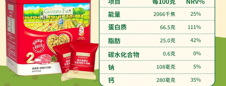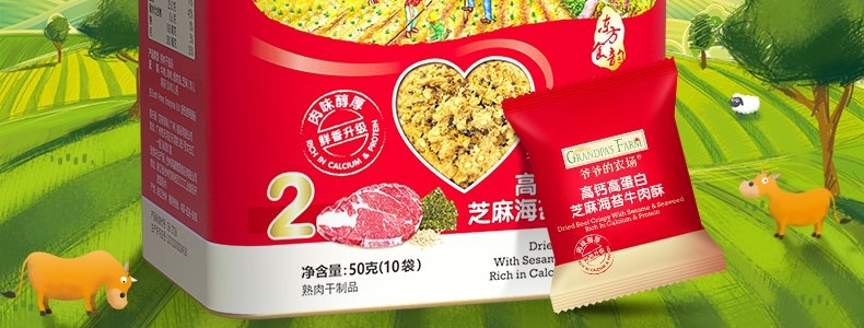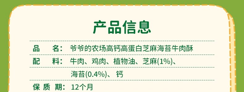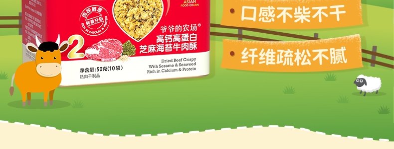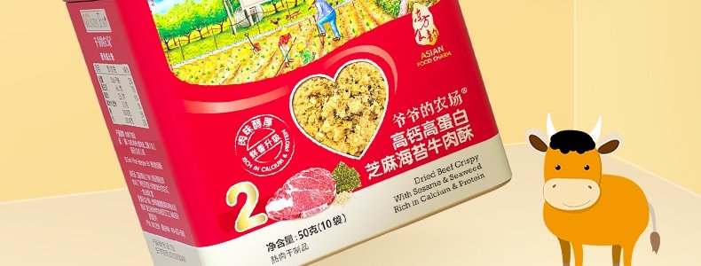 商品名称:爷爷的农场 高钙高蛋白芝麻海苔牛肉酥 50g/盒*2盒