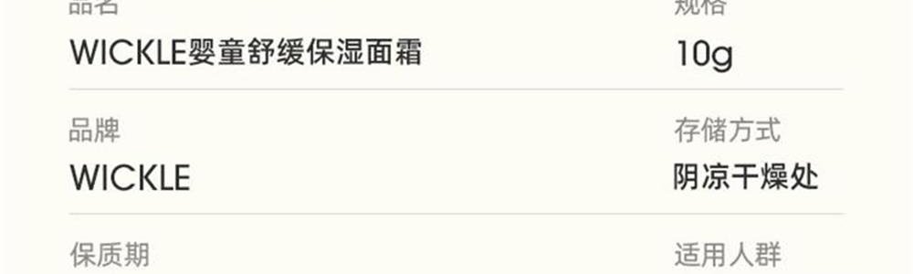商品名称:惟呵(WICKLE)婴童舒缓保湿面霜试用装 10g/支