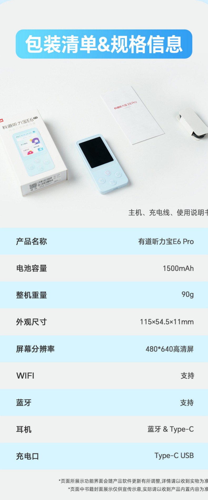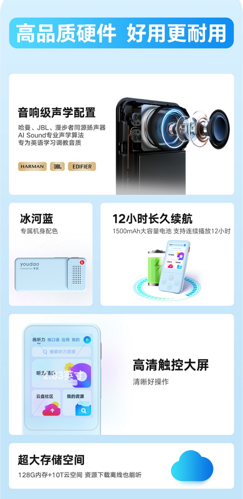 商品名称:有道128g听力宝-冰河蓝E6 Pro