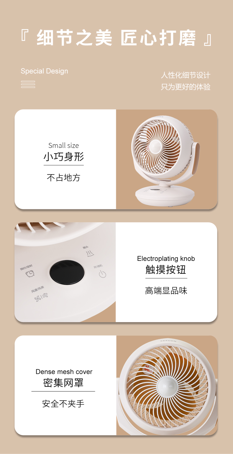商品名称:SEEDEN/西点触摸8档台式空气循环扇XD-1589FC