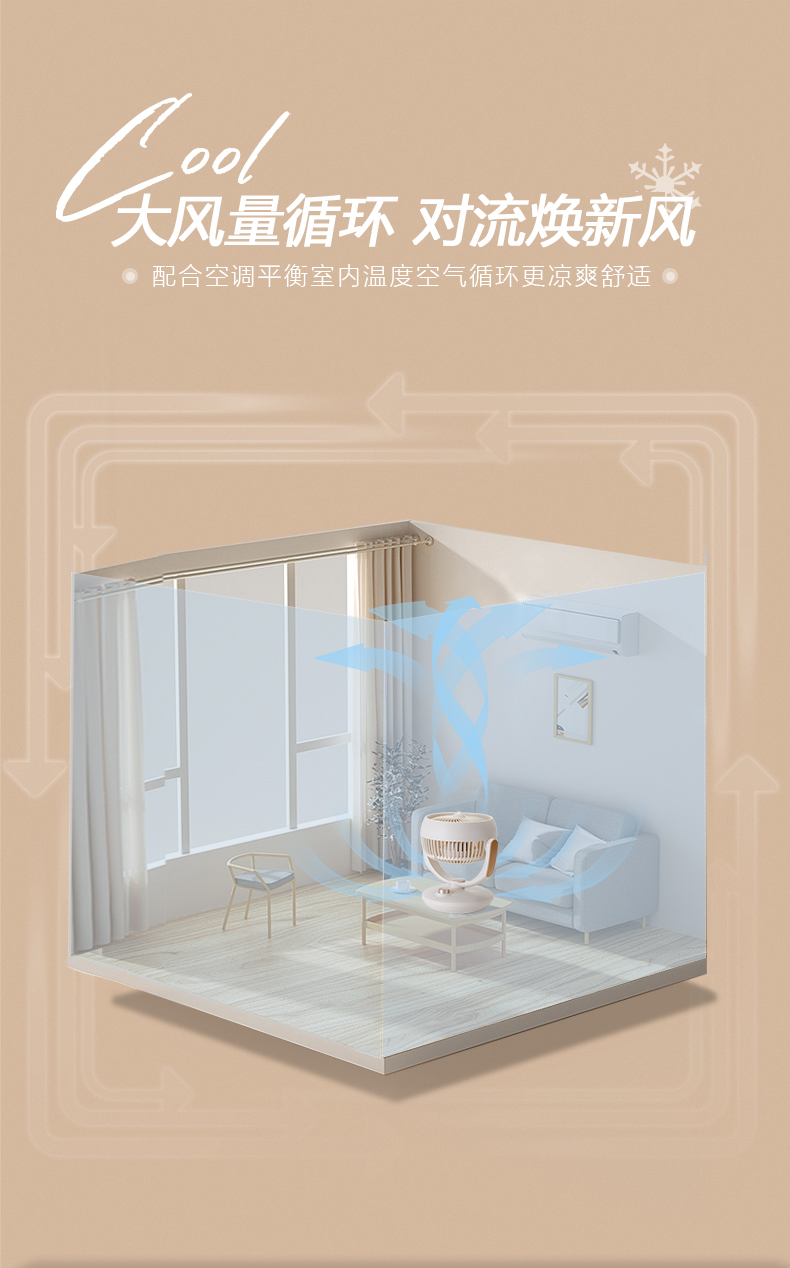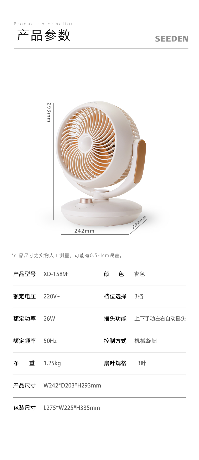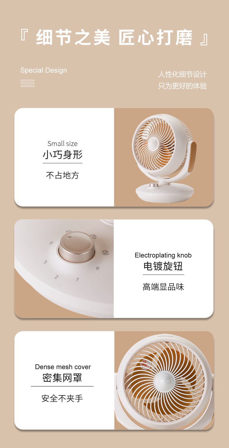 商品名称:SEEDEN/西点轻音台式循环扇-杏色XD-1589F