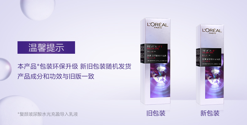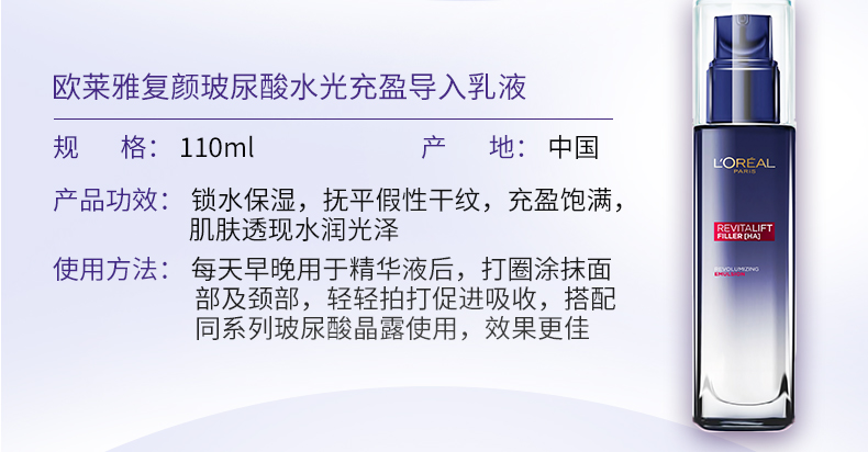 商品名称:L'oreal/欧莱雅 复颜玻尿酸水光充盈导入乳液 50ml/110ml 补水润肤乳