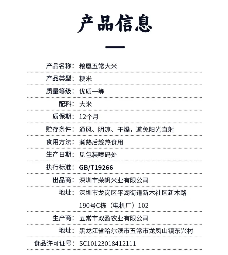 商品名称:粮凰五常大米2.5kg