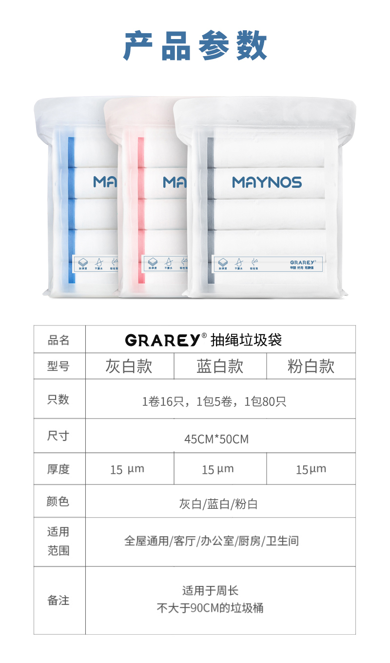 商品名称:GRAREY/格瑞亚抽绳垃圾袋80只*3包